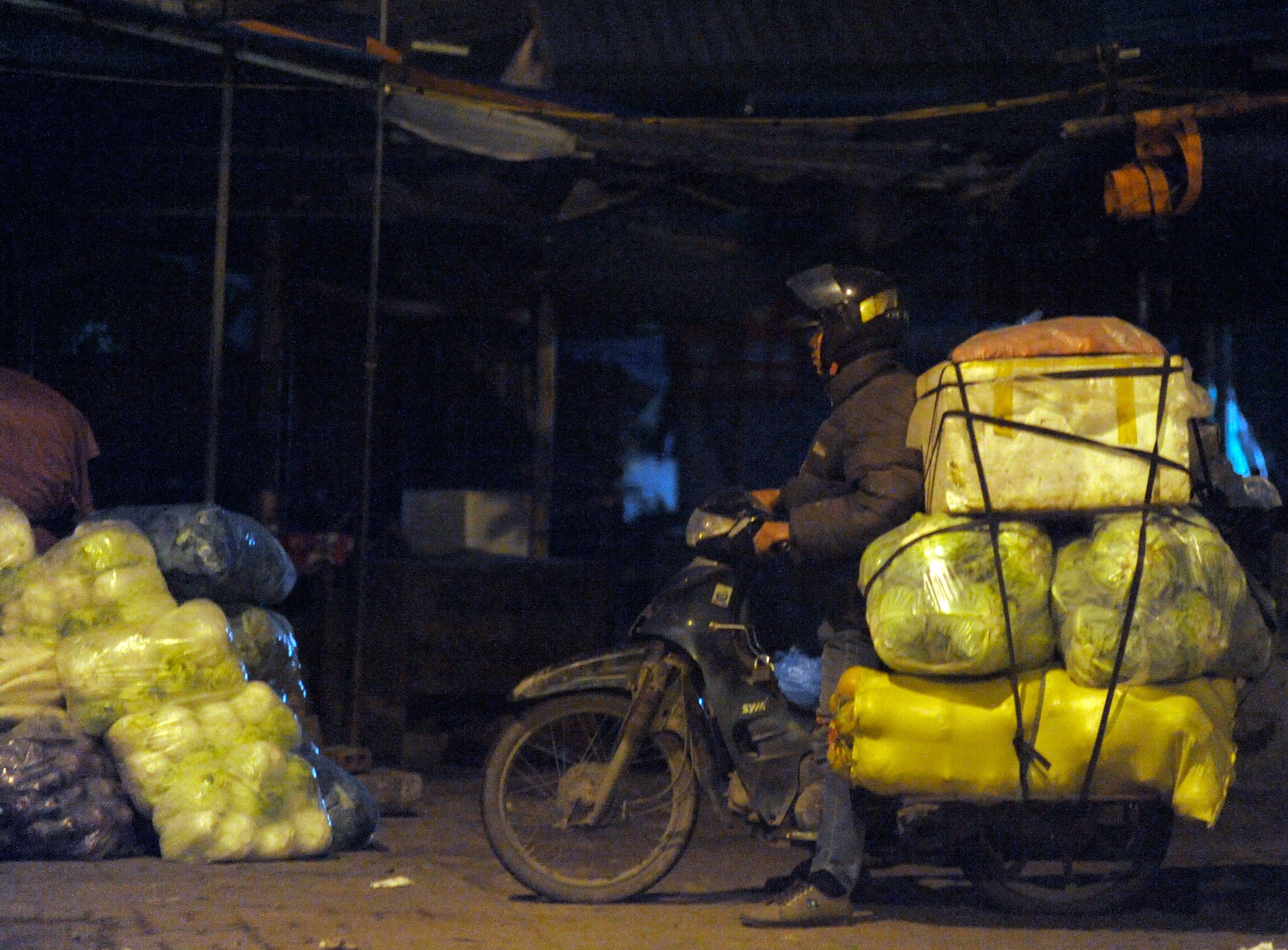 | 2h00 cũng là lúc những người buôn bán rau quả phải làm việc sớm tại chợ đầu mối Ngã Tư Sở.