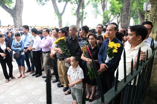 | Người dân tập trung trước giờ vào viếng. |