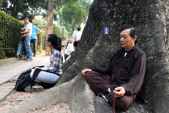 | Phía ngoài cổng, nhiều người tìm đến ngồi cầu nguyện cho Đại tướng. |