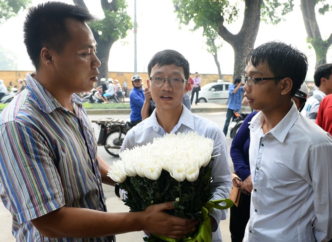 | Nhiều người sớm mang hoa đến nhưng do chưa đến giờ phải gửi người nhà tướng Giáp mang vào hộ. |