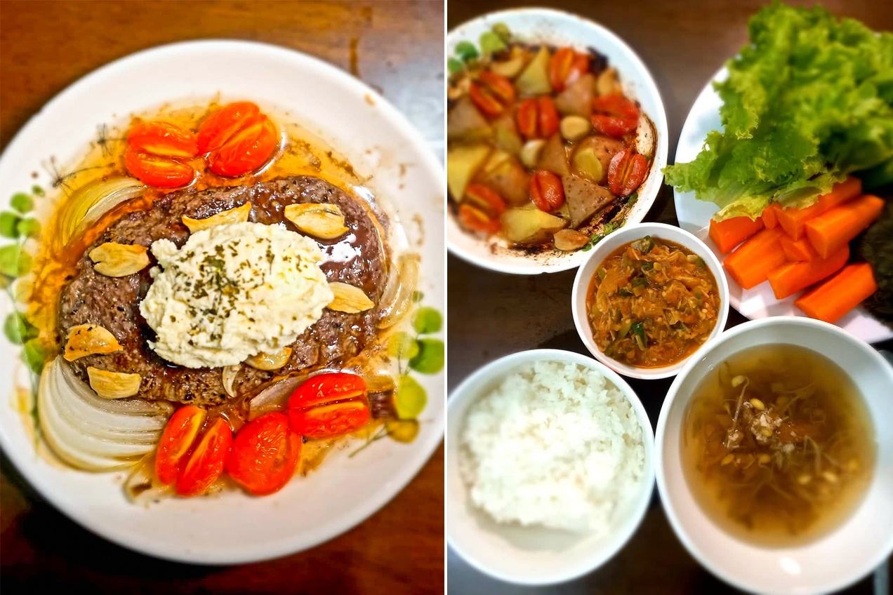 Tôi nhận ra việc bảo quản thực phẩm rất quan trọng trong giai đoạn này, làm sao để kéo dài thời gian sử dụng mà vẫn đảm bảo dinh dưỡng. Bây giờ, mỗi ngày tôi dành khoảng một tiếng cho việc nấu nướng. Thịt heo thường ướp theo kiểu Hàn Quốc rồi bảo quản trong ngăn đá tủ lạnh. Các bữa ăn đều cố gắng đơn giản nhưng vẫn đầy đủ rau củ để tăng cường sức khỏe cả gia đình.