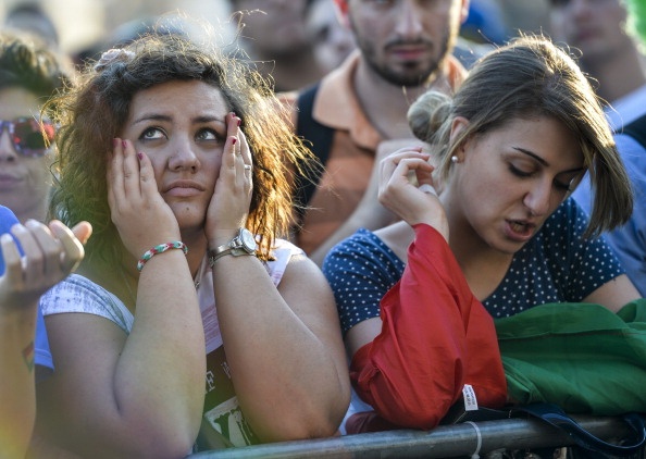 | Người hâm mộ Ý sững sờ trước thất bại gây sốc của Italy trước Costa Rica ở loạt trận đêm qua. |