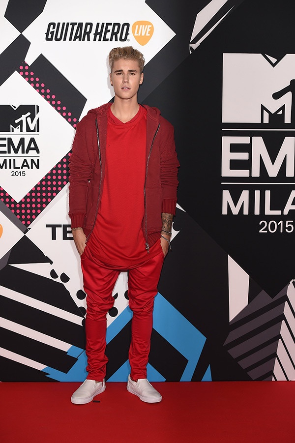 | Vẫn là phong cách quần tụt, áo suông dài quen thuộc, nhưng Justin Bieber khá lạ với mái tóc nhuộm vàng. Chàng hoàng tử nhạc pop là ngôi sao của EMA năm nay khi trở thành người chiến thắng nhiều nhất trong một năm với 5 giải thưởng. |