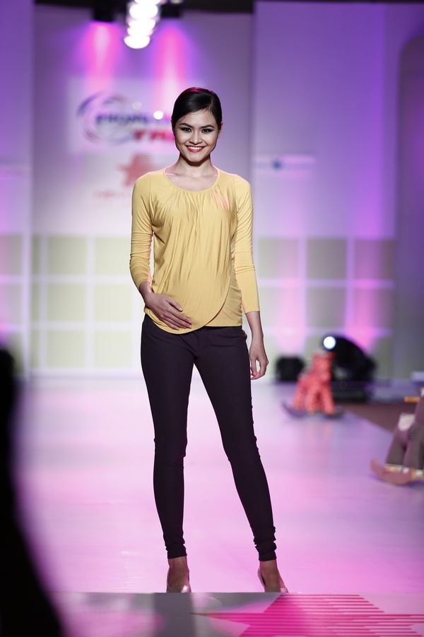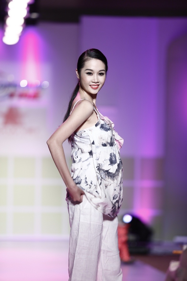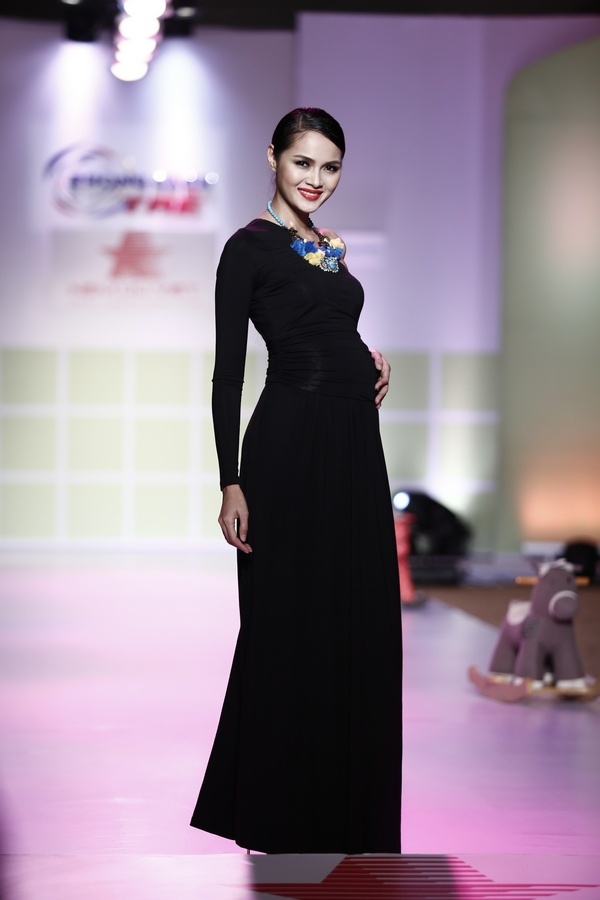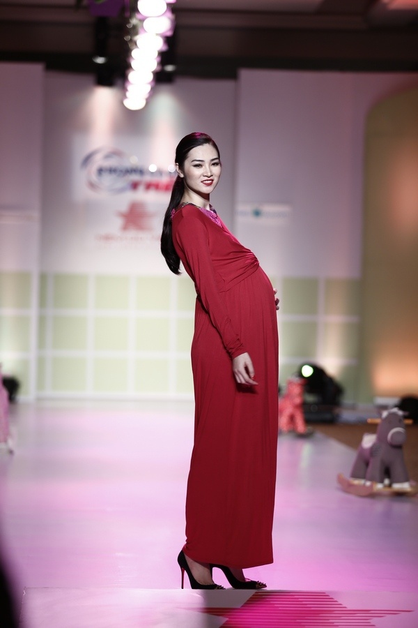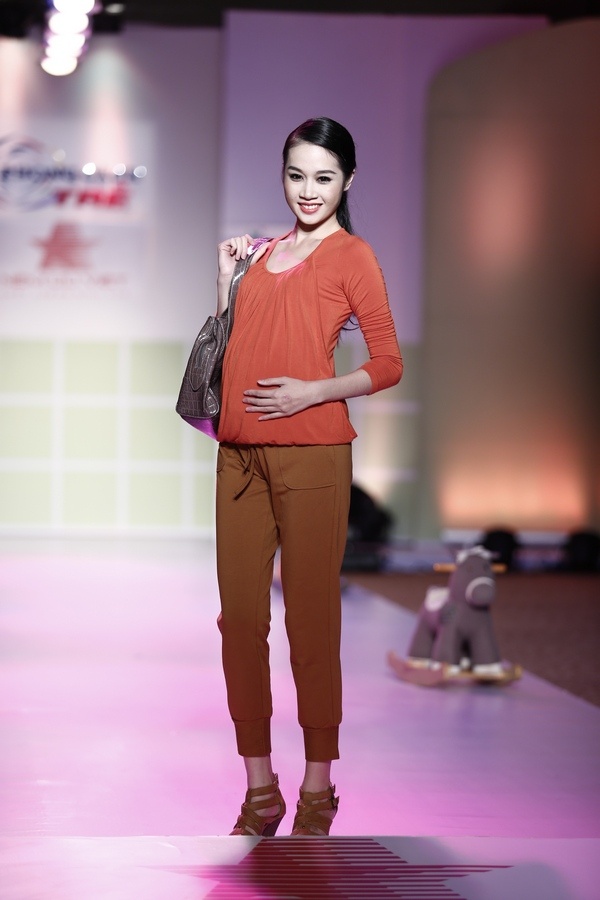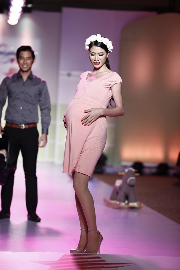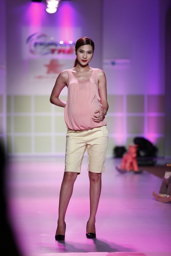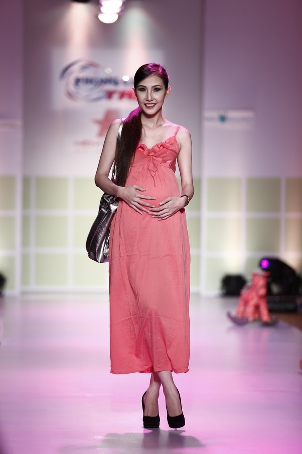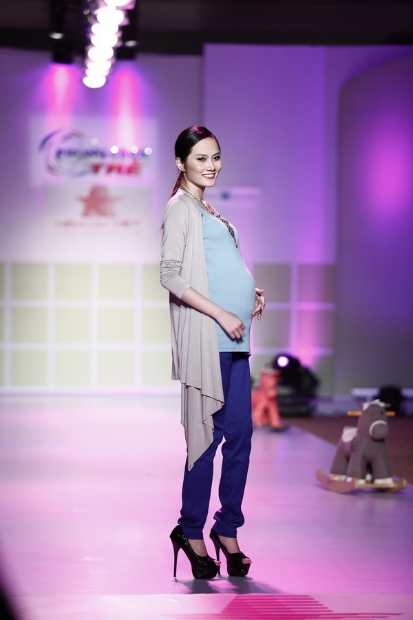 | Next Top Model Thùy Trang diễn trang phục dành cho phụ nữ mang thai tháng thứ 8. |