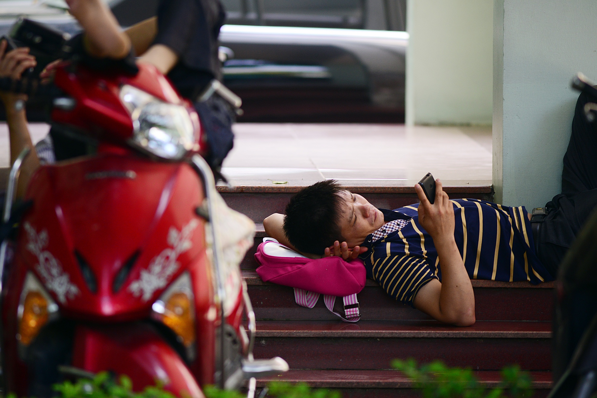 | Mọi vị trí gần địa điểm thi đều được người nhà thí sinh tận dụng ngả lưng hoặc ngồi nghỉ. |