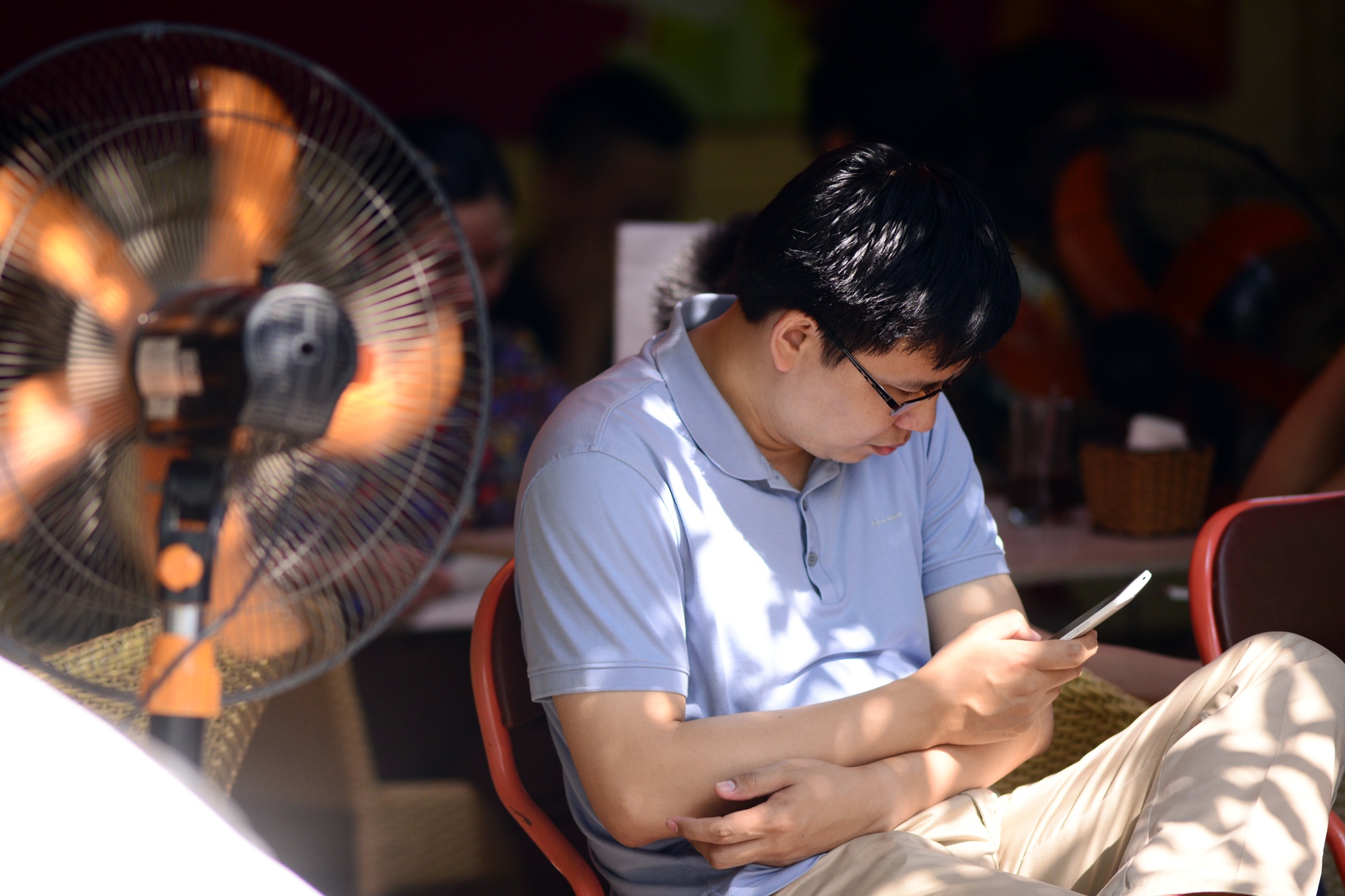 | Cũng có nhiều người vào quán cafe ngồi với quạt mát. |