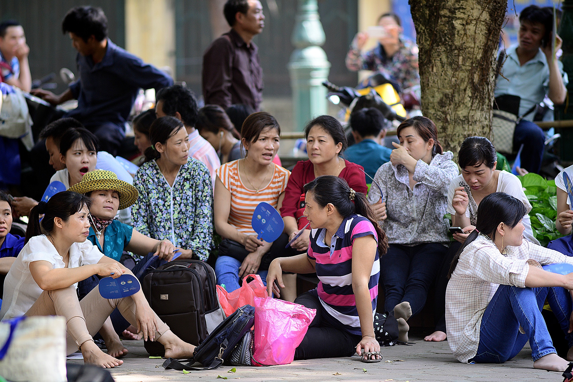 Người nhà sĩ tử căng thẳng trong nắng nóng 40 độ C
