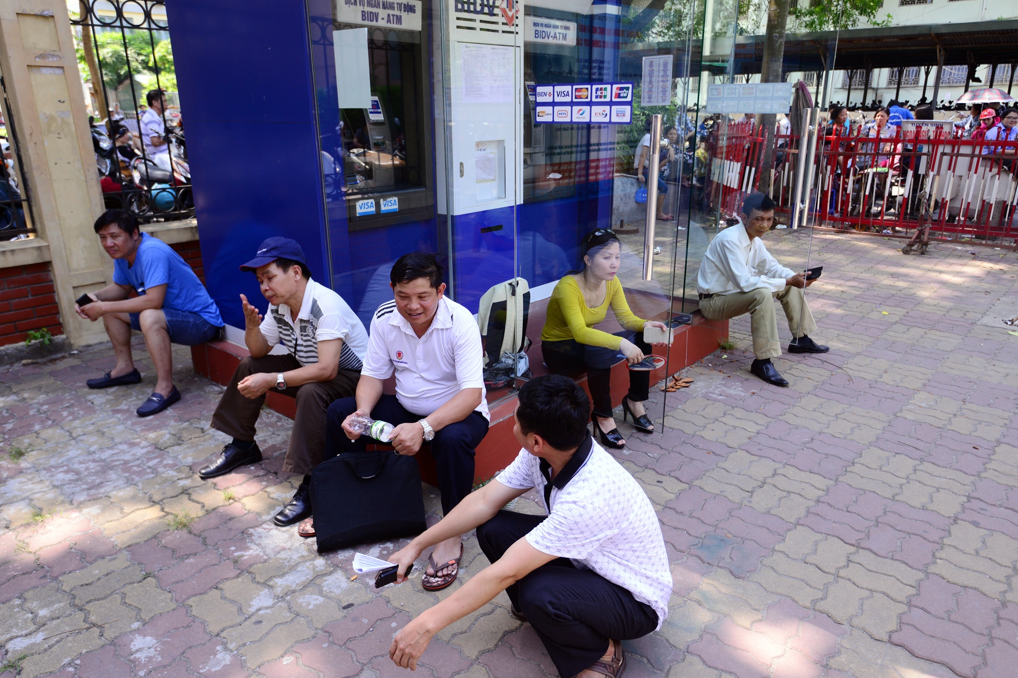 Tại Đại học Quốc gia Hà Nội, nhiều phụ huynh trú dưới bóng cây đợi người thân.