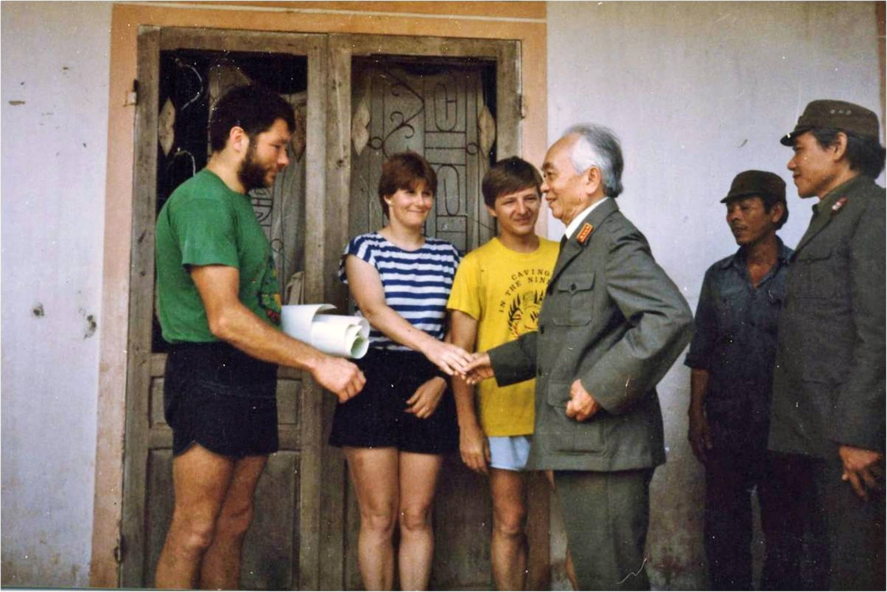 | Deb Limbert (áo sọc) trong lần gặp Đại tướng Võ Nguyên Giáp vào năm 1992. Ảnh: Nhân vật cung cấp. |