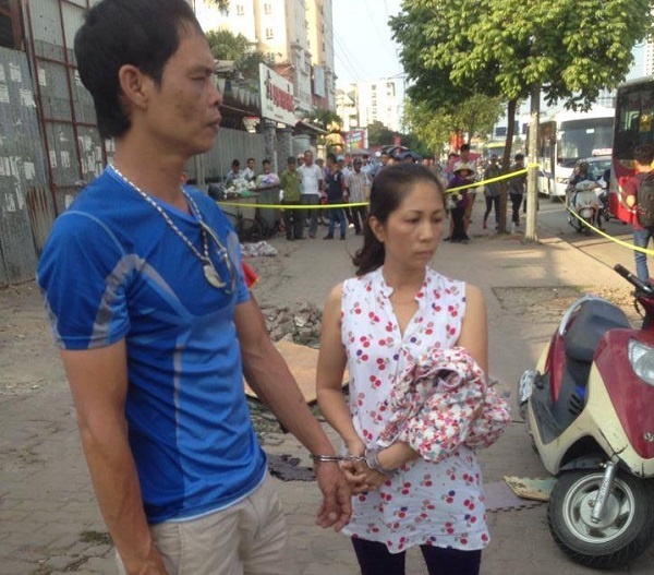 Tại Công an quận Nam Từ Liêm, bộ đôi khai là Nguyễn Quốc Huy (42 tuổi, ở quận Hoàng Mai) và Đặng Bích Thuỷ (43 tuổi, ở quận Cầu Giấy).