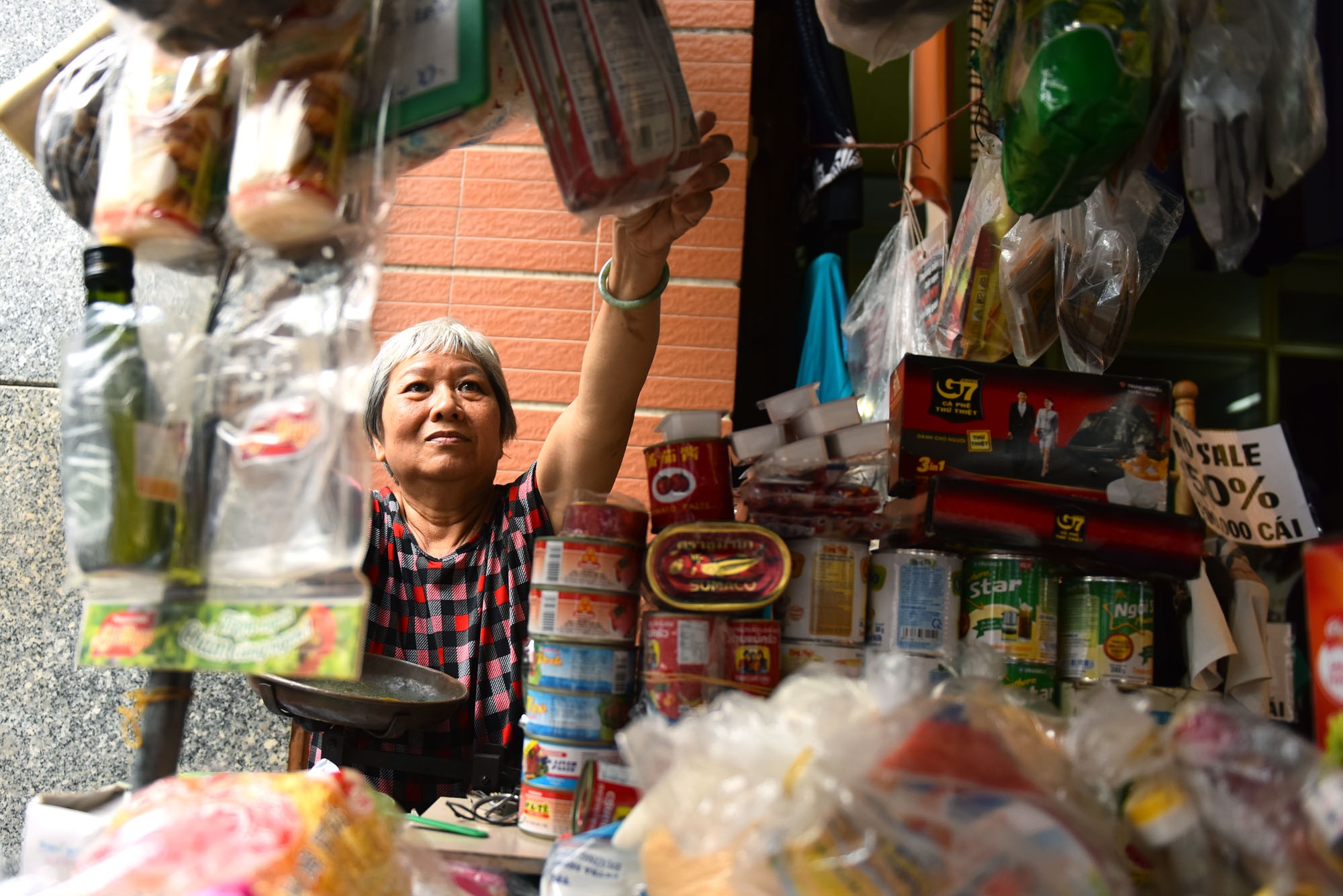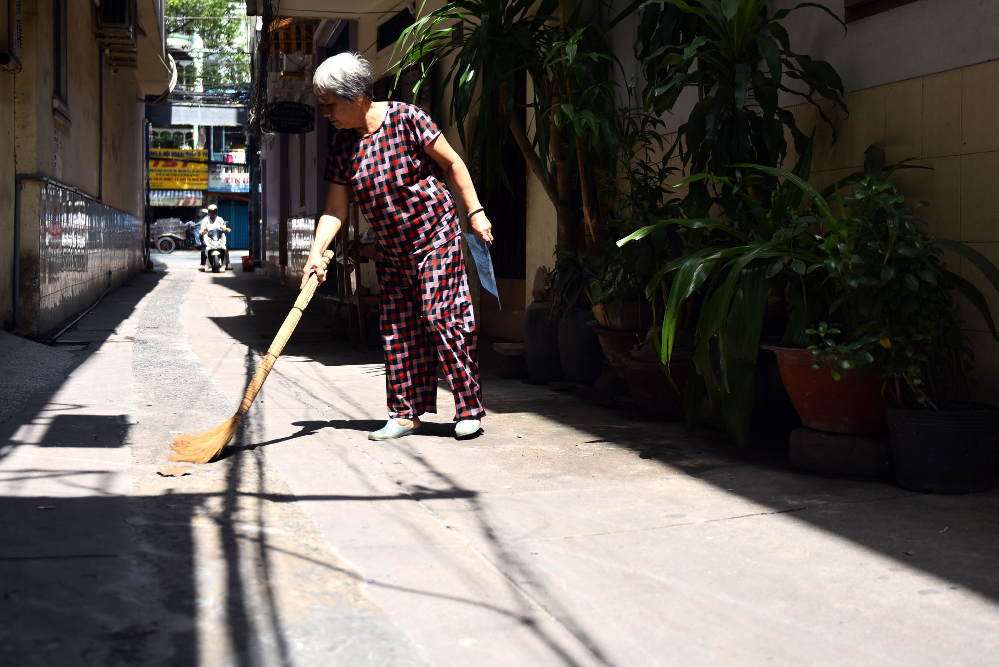 Người dân khu phố 2, phường 3, quận 5, TP HCM thường gọi bà Trần Tú Nga là "bao đồng" vì đã hơn 7 năm nay người phụ nữ tóc đã muối tiêu thường tự nguyện dọn dẹp rác để làm sạch phố phường. |