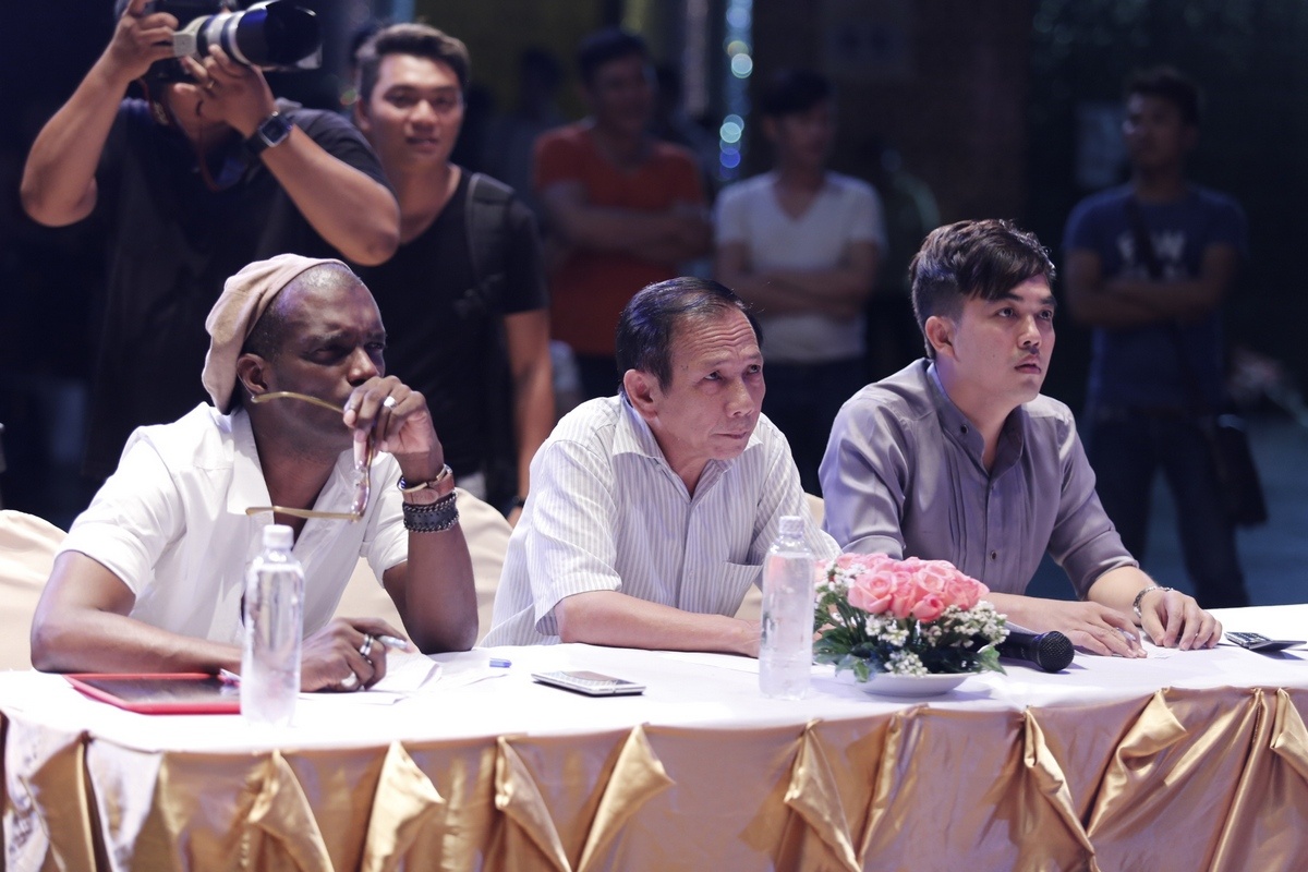 | Huấn luyện viên - đạo diễn hình ảnh người Pháp Henri Hubert cùng thành viên BTC chấm điểm các thí sinh ở vòng loại đầu tiên.