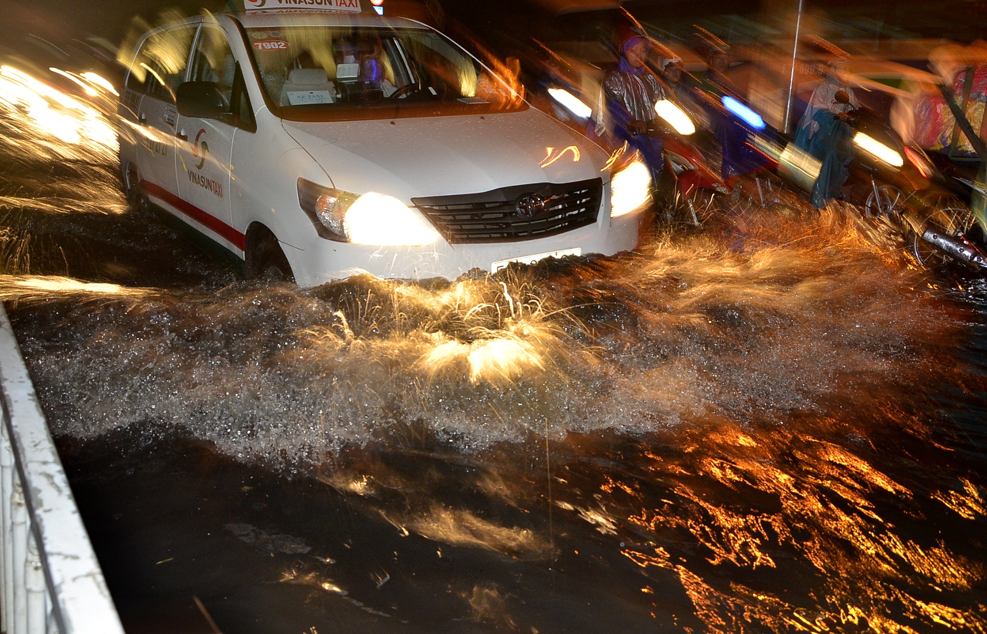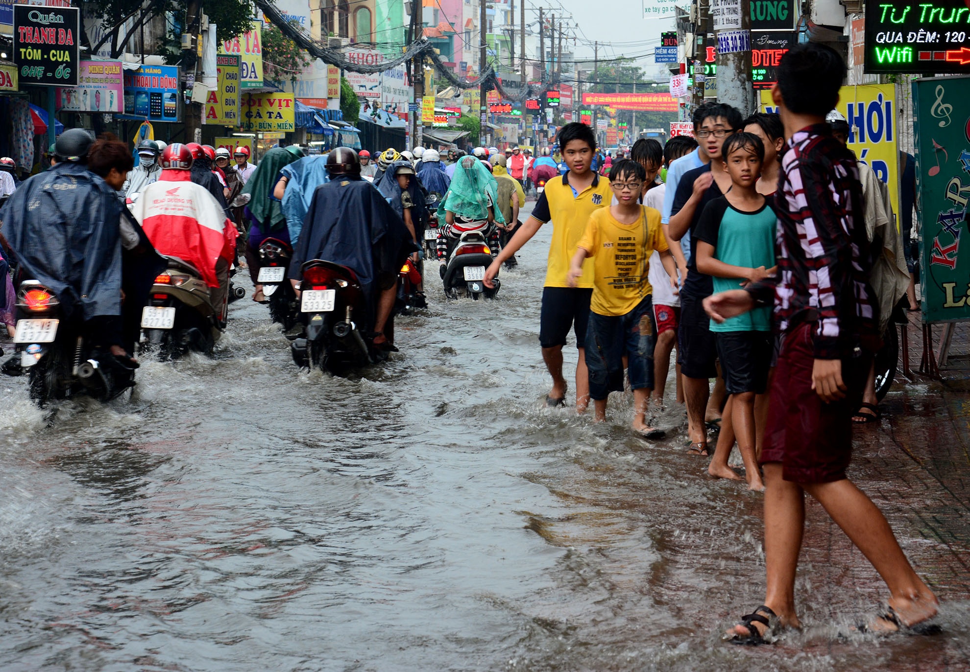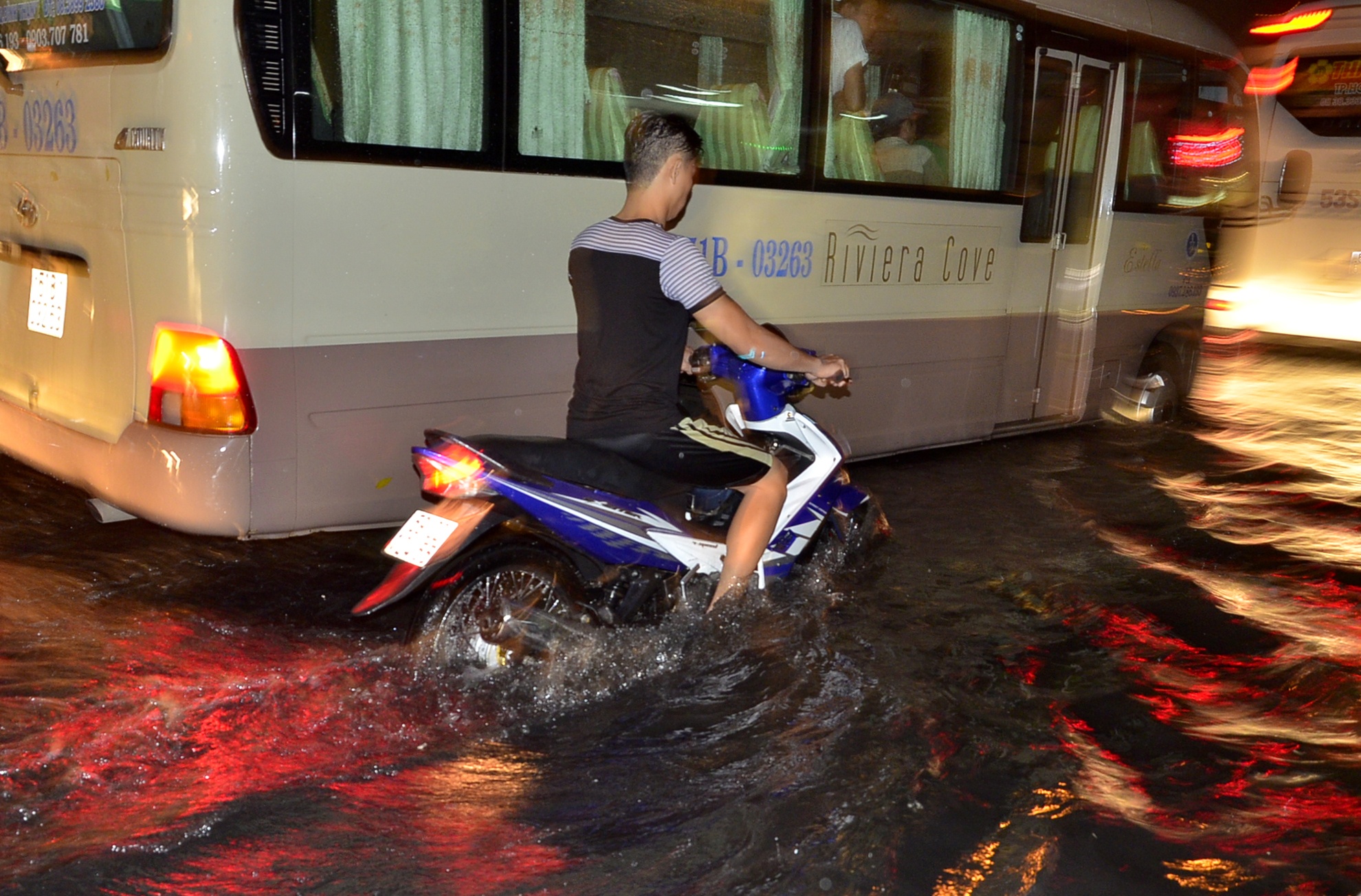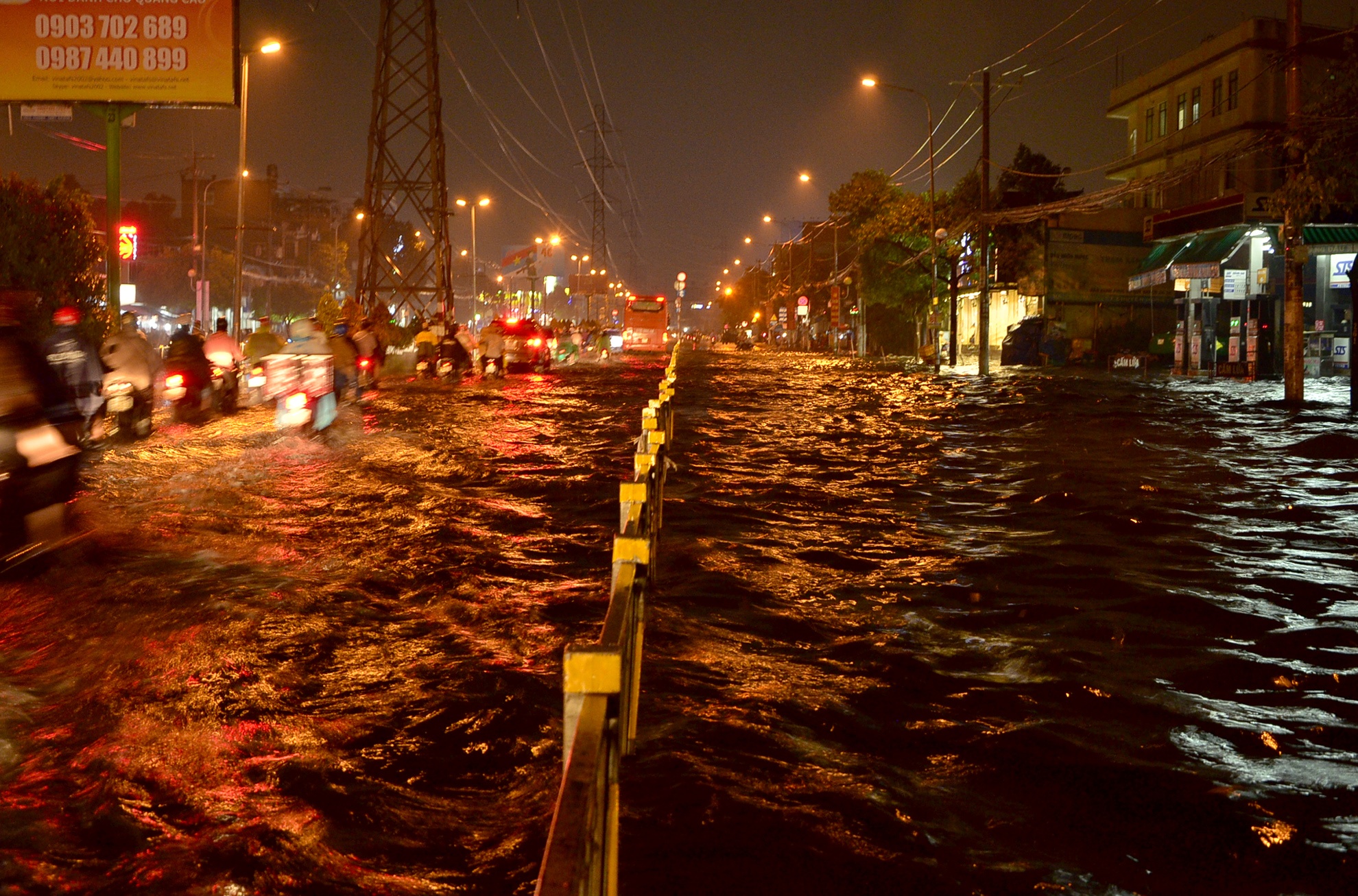 Hai trận mưa lớn trút xuống TP HCM khiến nhiều tuyến đường ngập mênh mông trong nước từ chiều đến 21h tối 30/7.