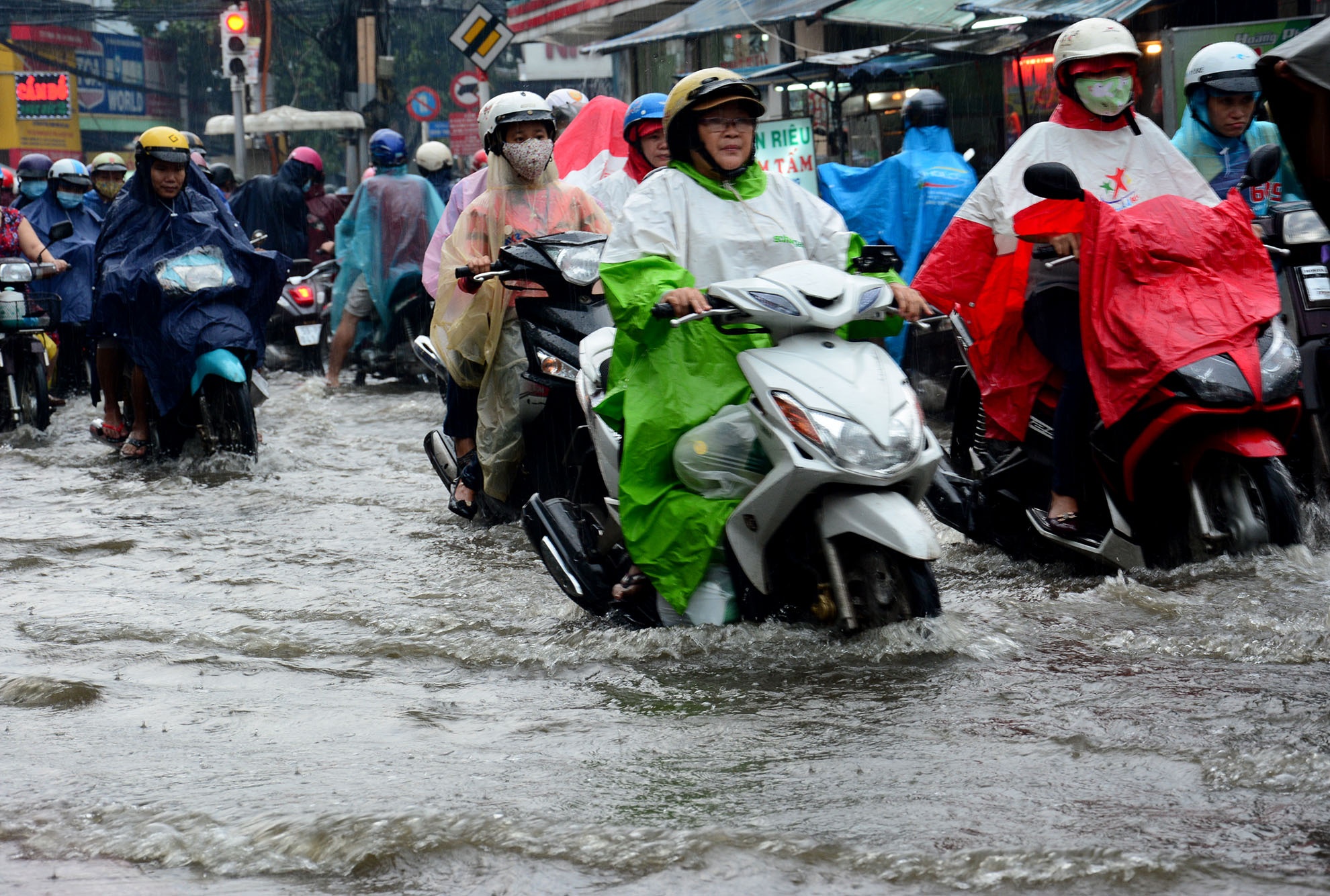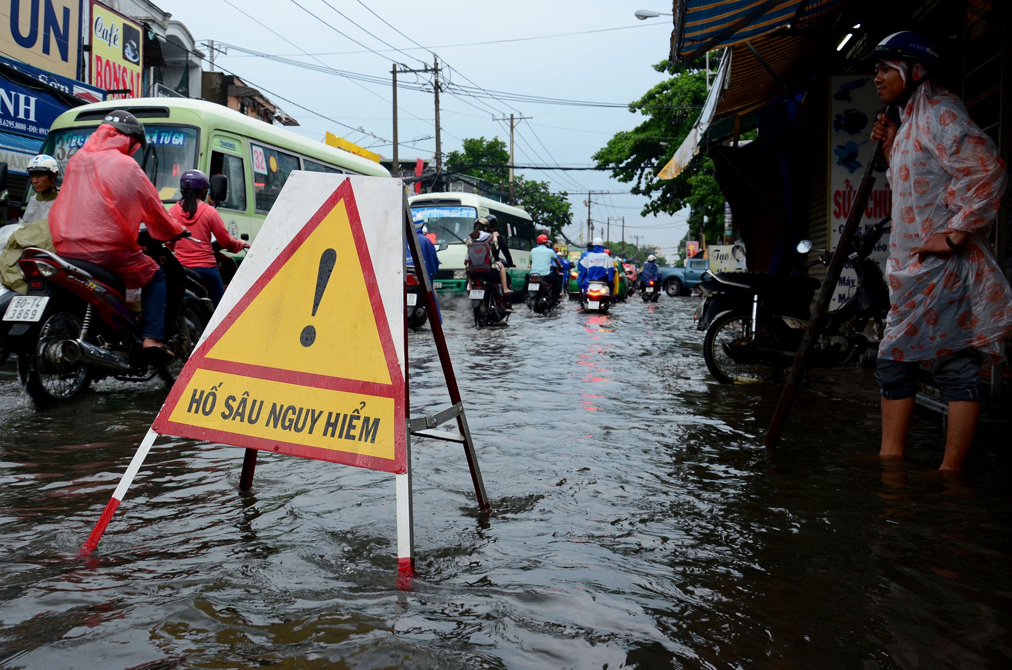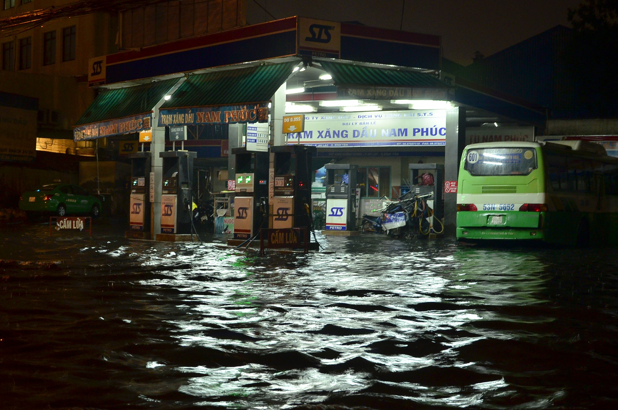 | 16h chiều 30/7, cơn mưa lớn như trút nước xuống nhiều quận, huyện trên địa bàn TP HCM. Chỉ trong khoảng 30 phút, một số tuyến đường sớm bị ngập sâu do thấp trũng và nước không kịp thoát. |