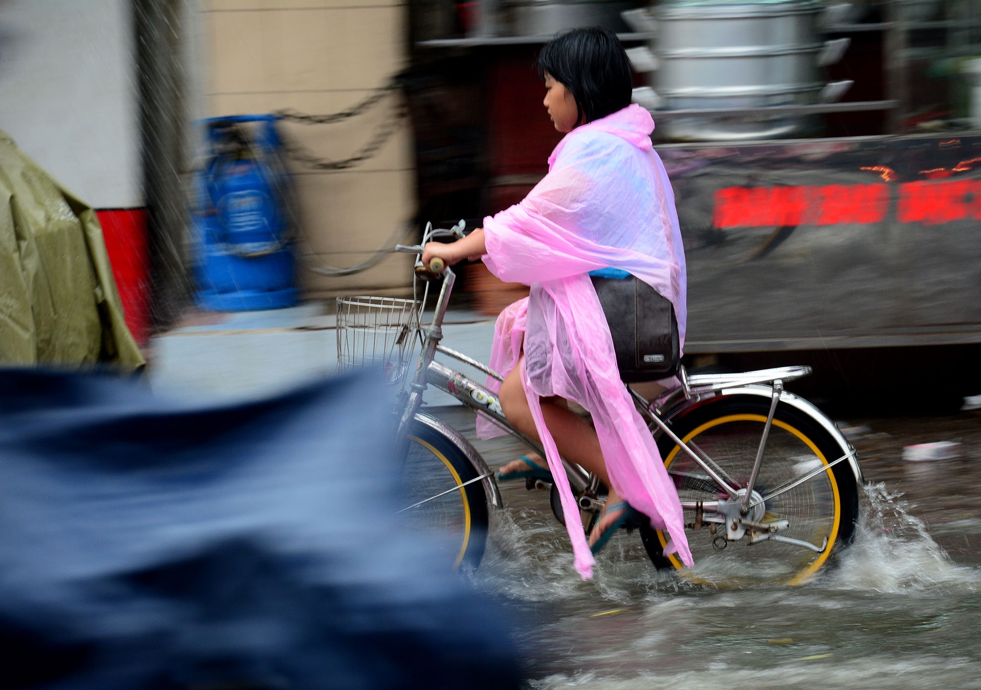 | Nhiều người trong đó có trẻ em vừa phải đội mưa lớn, gió mạnh vừa phải vất vả vượt qua những điểm mênh mông nước. |