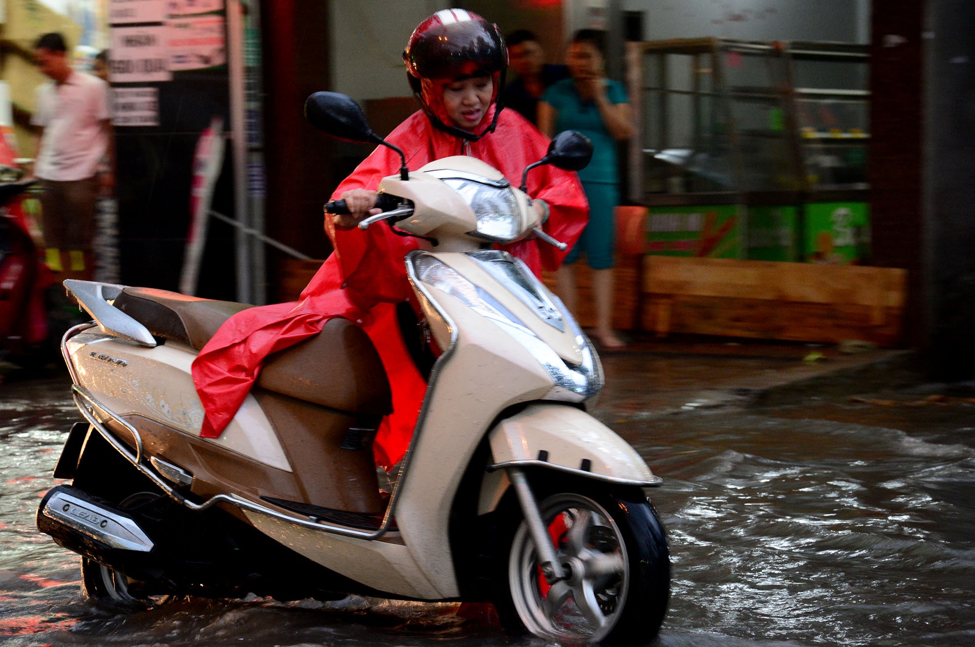 Một số người liều lĩnh tăng ga phóng qua đoạn ngập tương đối nông.