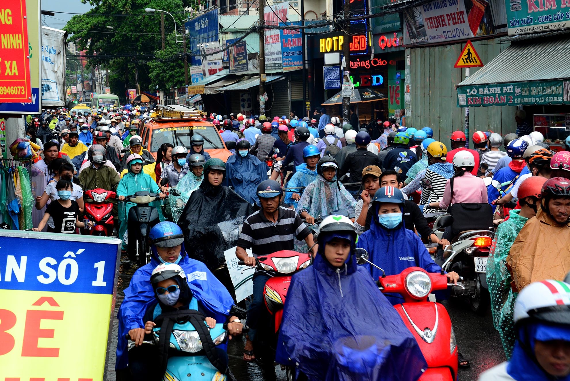 | Trong khi đó, đường Quang Trung, Phạm Văn Chiêu, quận Gò Vấp cũng bị kẹt xe do ảnh hưởng của mưa ngập. |