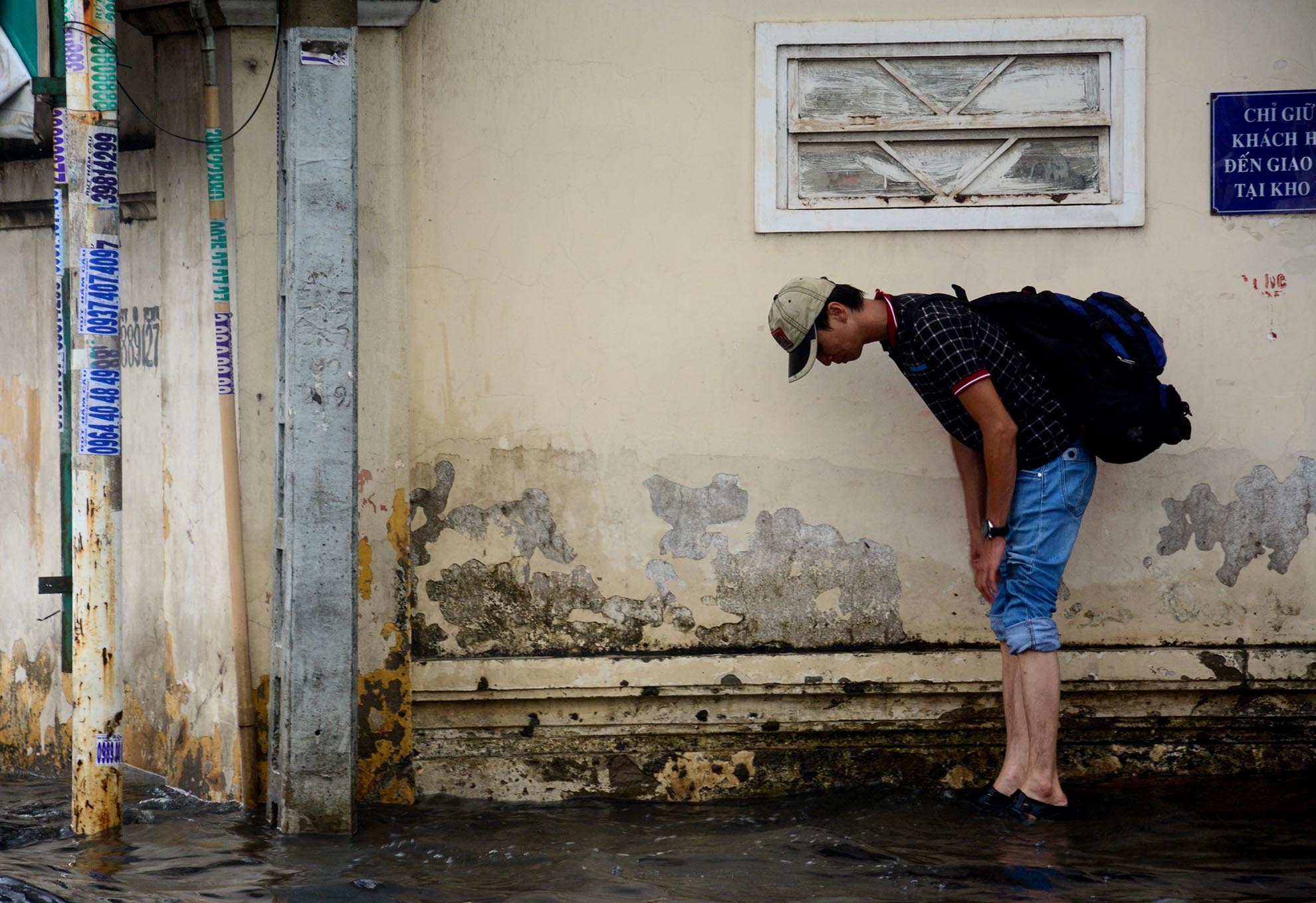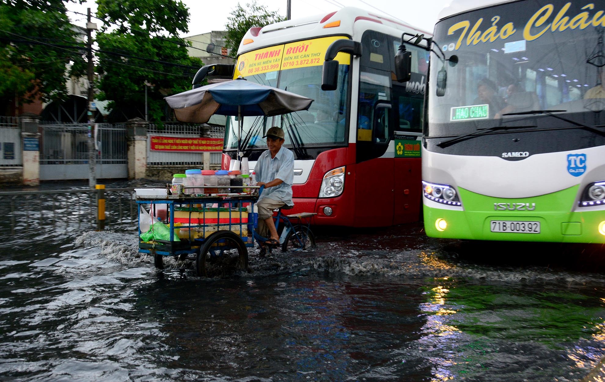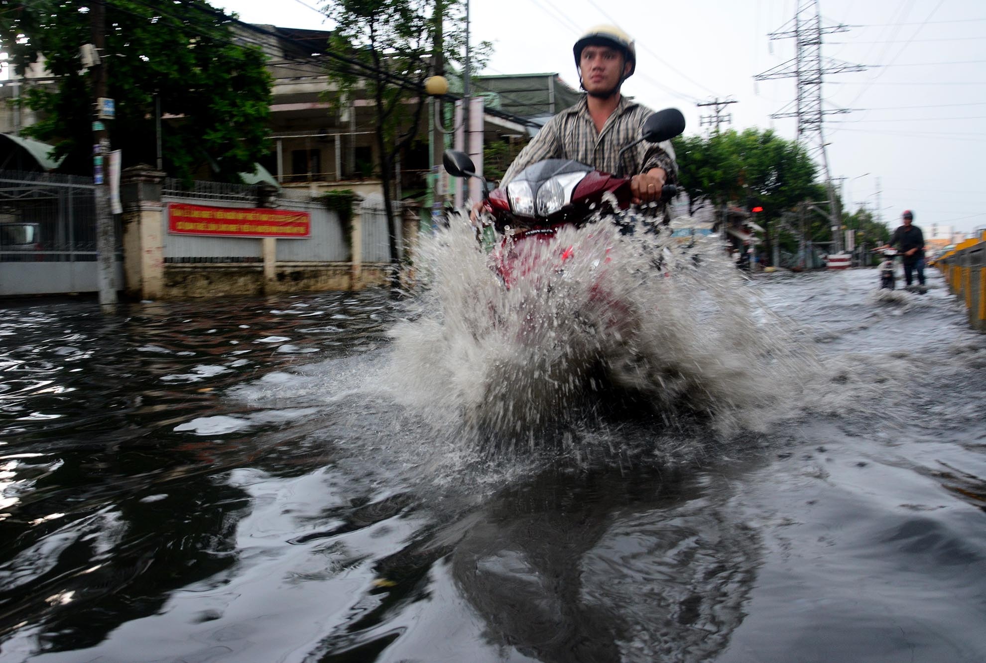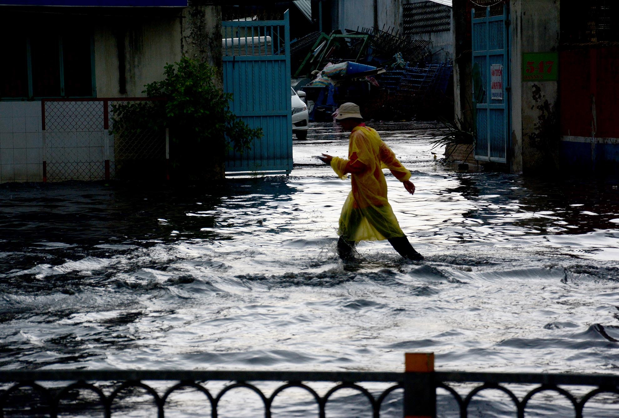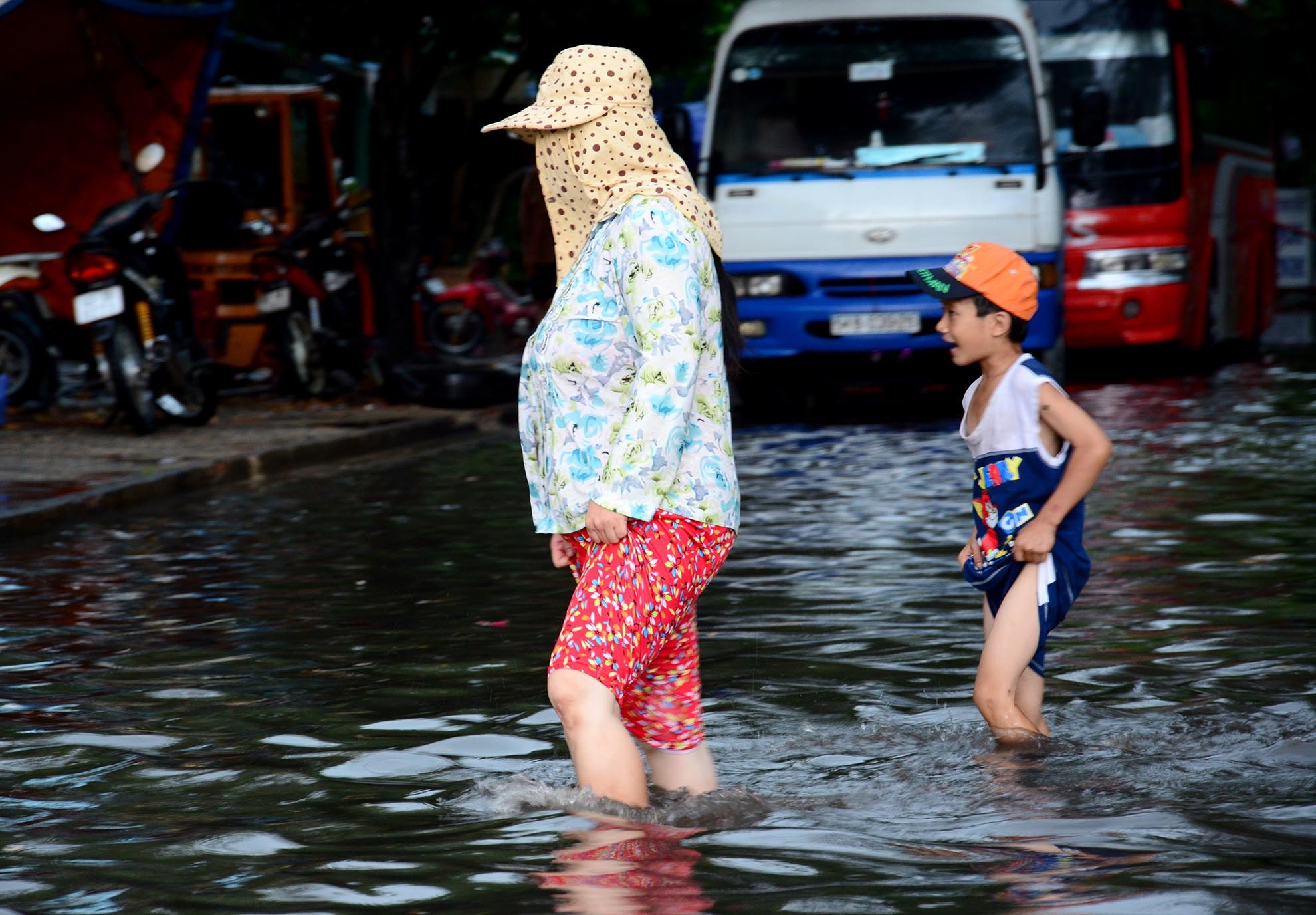 Người Sài Gòn lội bì bõm trong mưa ngập