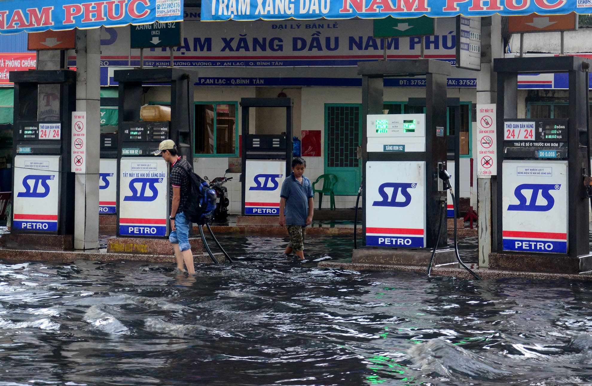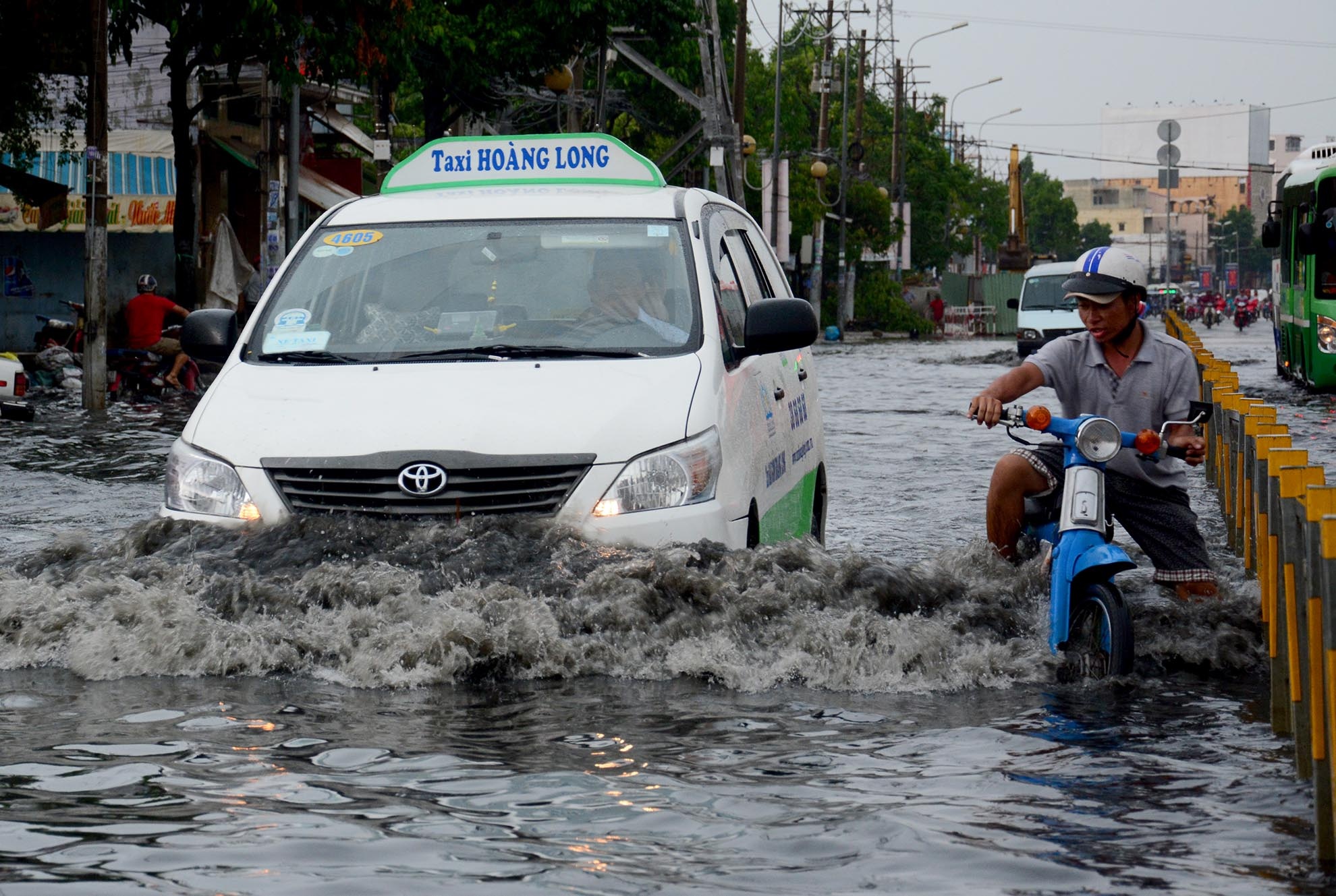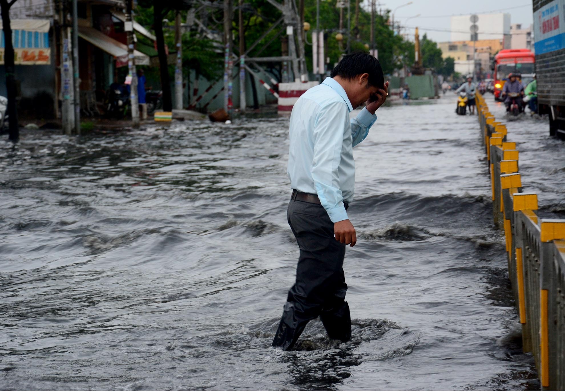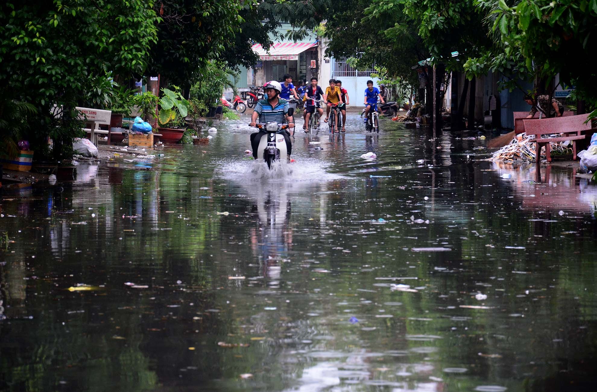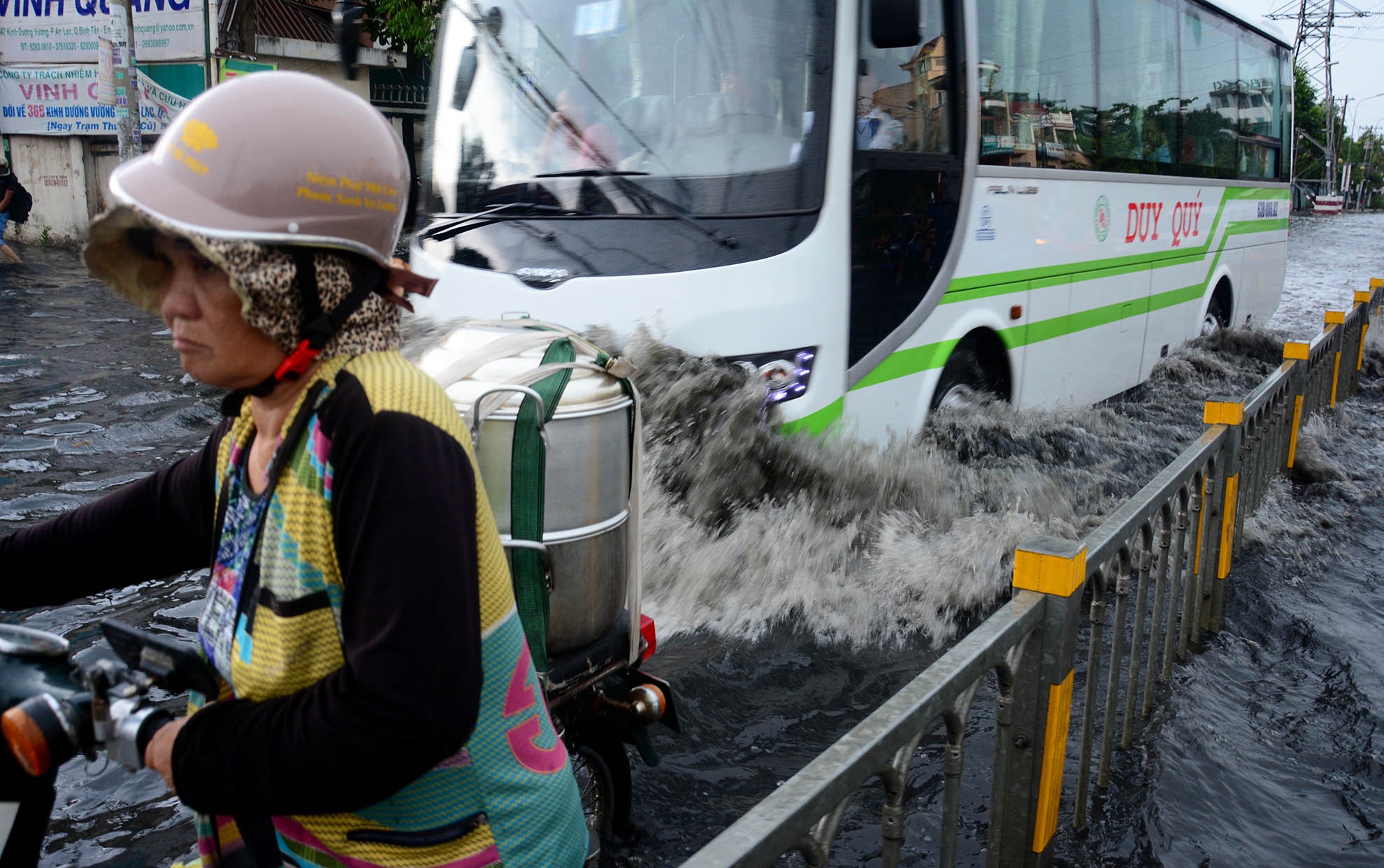 Người Sài Gòn lội bì bõm trong mưa ngập