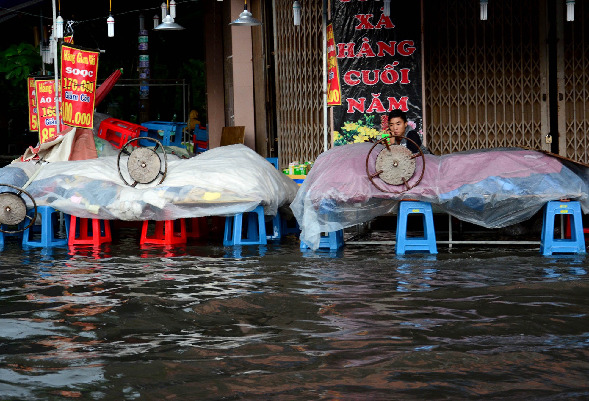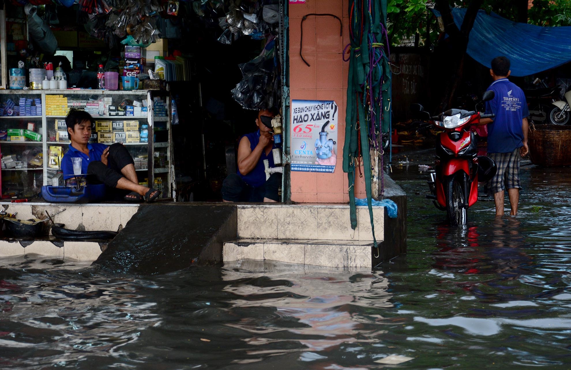 | Các hoạt động buôn bán hai bên những tuyến đường ngập bị tê liệt hoàn toàn. |