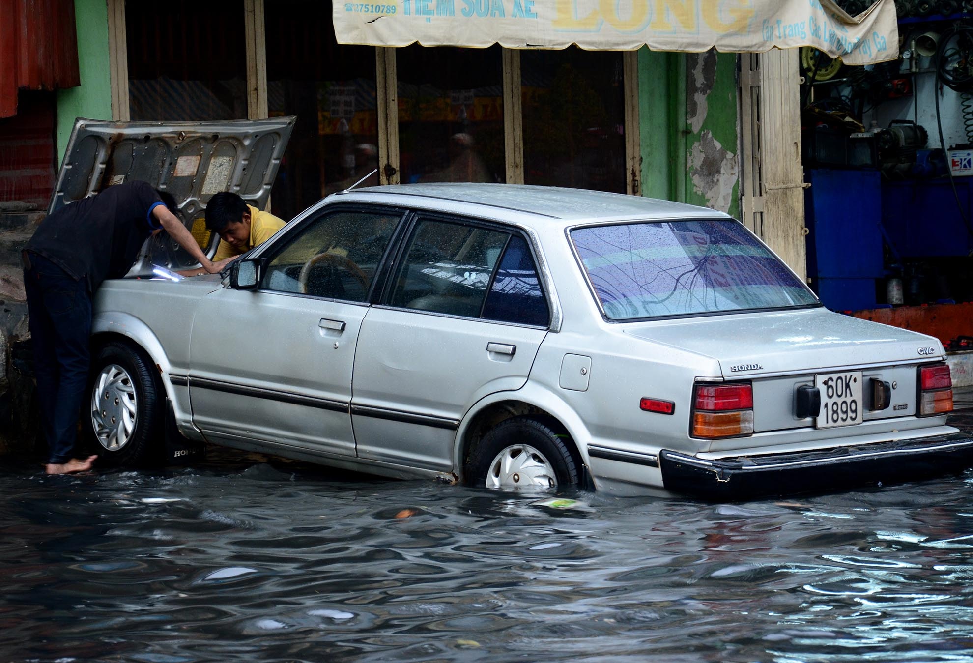 | Không chỉ xe máy, một số ôtô cũng bị chết máy, chủ xe phải đẩy vào bên đường để sửa. |