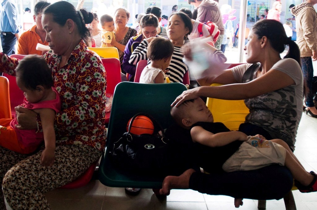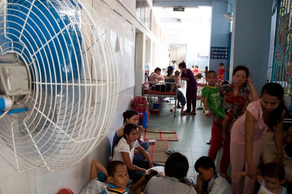 | Thời tiết nắng nóng kéo dài khiến trẻ em dễ mắc các bệnh như tiêu chảy, sốt siêu vi, sốt xuất huyết, tay chân miệng... Chị Nguyễn Thị Phụng (ngụ quận 1) đưa con trai 28 tháng tuổi đi khám vì bé bị sốt cao. Theo chị, gia đình ở trong khu nhà chật chội, nóng hầm hập khiến bé phát bệnh. |