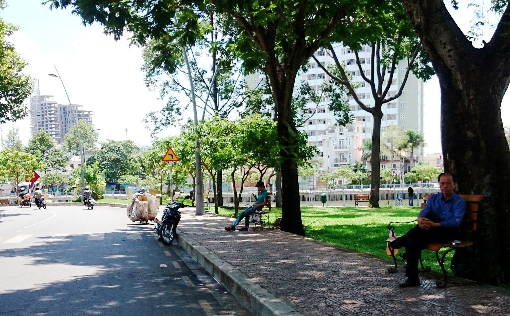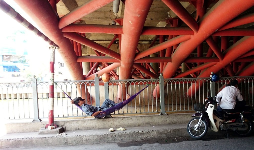 | Gầm của những cây cầu bắt qua kênh Nhiêu Lộc - Thị Nghè như cầu Kiệu, Công Lý, Hoàng Hoa Thám... là nơi người lao động quanh khu vực thường đến nghỉ trưa. Theo người dân, nơi đây có gió mát từ bờ kênh, là địa điểm lý tưởng cho mọi người tránh nóng buổi trưa. |