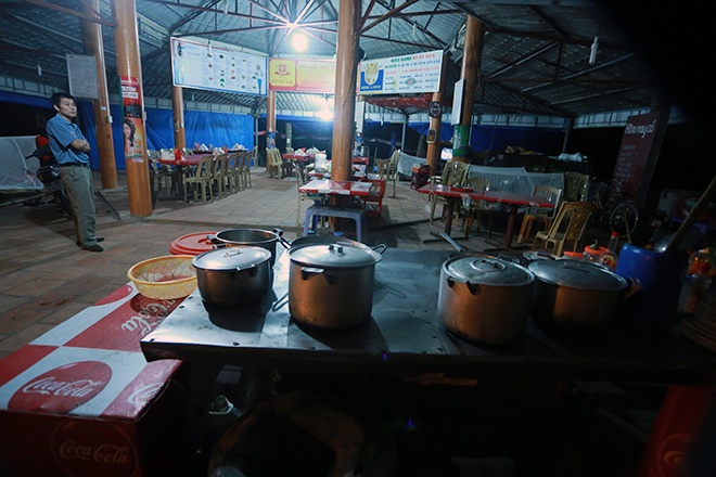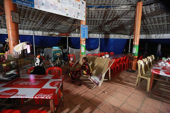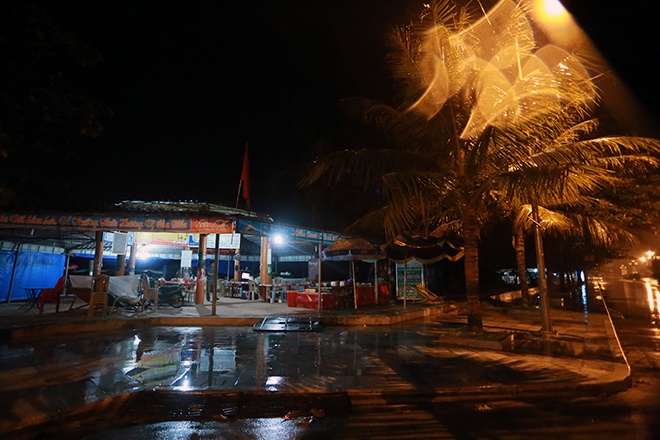 | 2h sáng 10/11 nhiều quán ăn dọc bãi biển Sầm Sơn vẫn mở cửa phục vụ khách. Thời tiết ở đây mưa nặng hạt, có gió và biển động khá mạnh. |