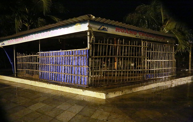 | Người dân cho biết, chiều 9/11 lãnh đạo phường Trường Sơn, TX Sầm Sơn có thông báo về siêu bão và yêu cầu hàng quán di tản vào bên trong nhưng nhiều người vẫn phớt lờ. |