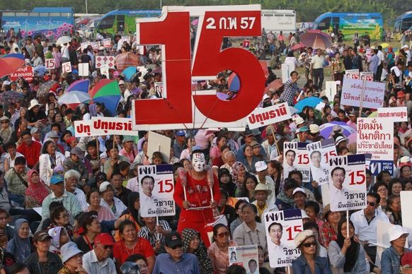 | Những người ủng hộ chính phủ giơ cao số 15 trong cuộc vận động tranh cử hôm 4/1. Đảng cầm quyền xếp thứ 15 trong cuộc bầu cử sớm vào hôm 2/2. Ảnh: Reuters |