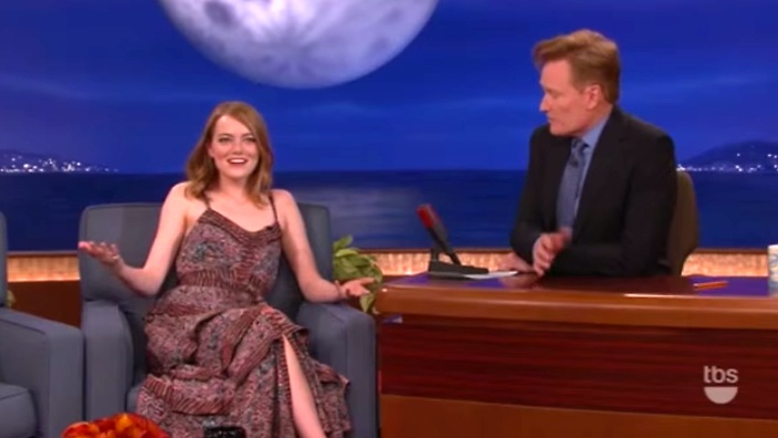 | Emma Stone trong chương trình của Conan O'Brien phát sóng ngày 14/7. |