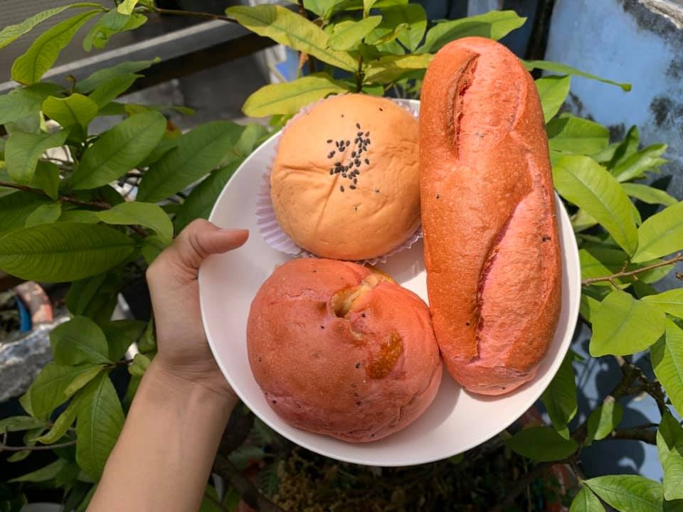 Bánh mì nóng, giòn, xốp, thơm nhẹ hương thanh long, thích hợp ăn kèm phô mai, xúc xích, trứng hoặc chấm sữa đặc là đủ lót dạ bữa sáng. Ảnh: Ngọc Ruby, Hồ Ái Uyên. |