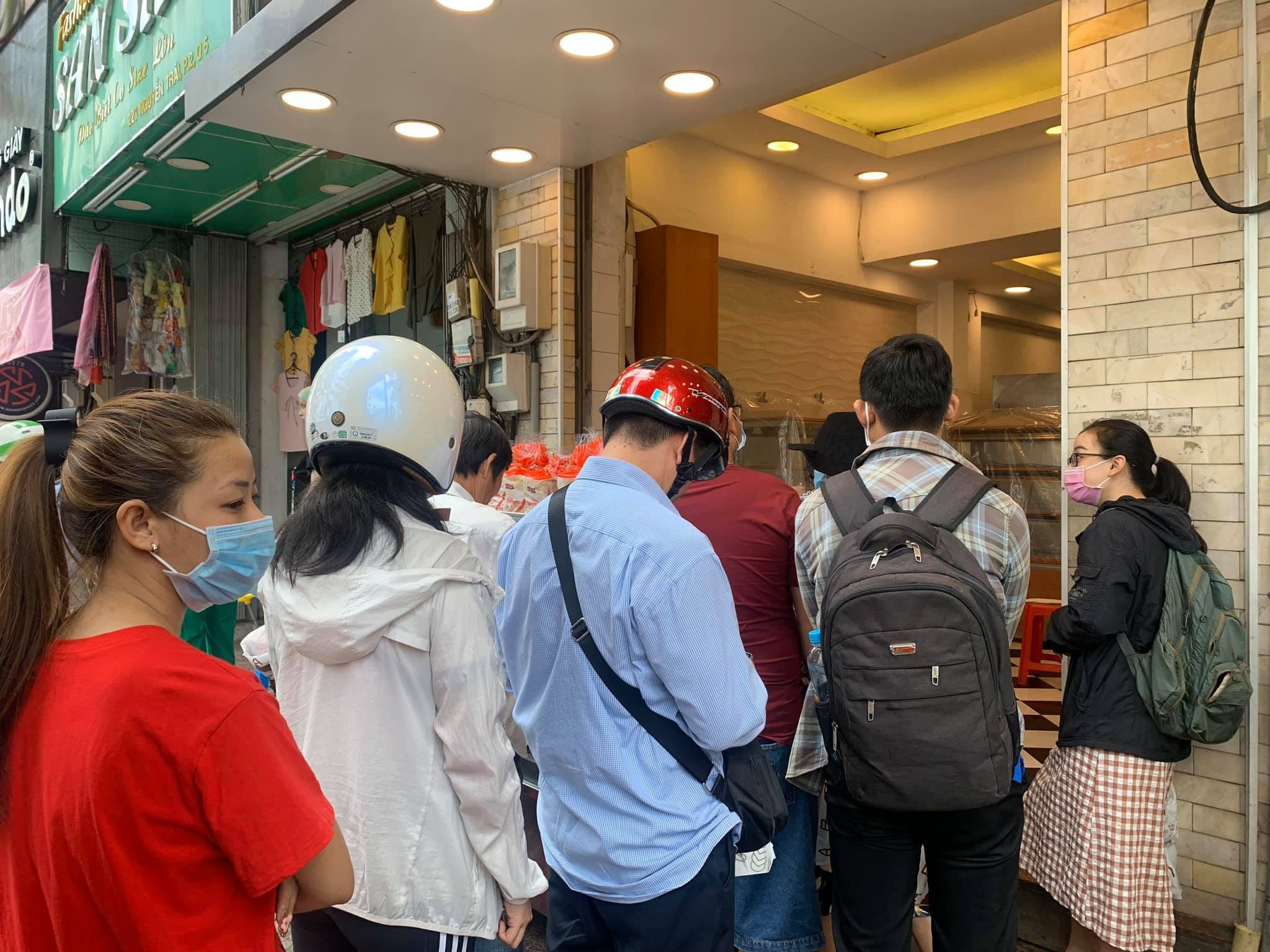 Có 4 loại bánh mì đang được bày bán tại các cửa hàng với giá dao động từ 6.000-22.000 đồng/chiếc, tùy loại nhân. Mỗi mẻ bánh cách nhau từ 15-20 phút và bán hết trong vòng chưa đầy 5 phút. Ghi nhận tại một số cửa hàng trong TP.HCM, nhiều người phải xếp hàng dài ít nhất 15 phút chờ đến lượt để mua được bánh mì thanh long. Ảnh: Anh Phương, Trúc Linh. |