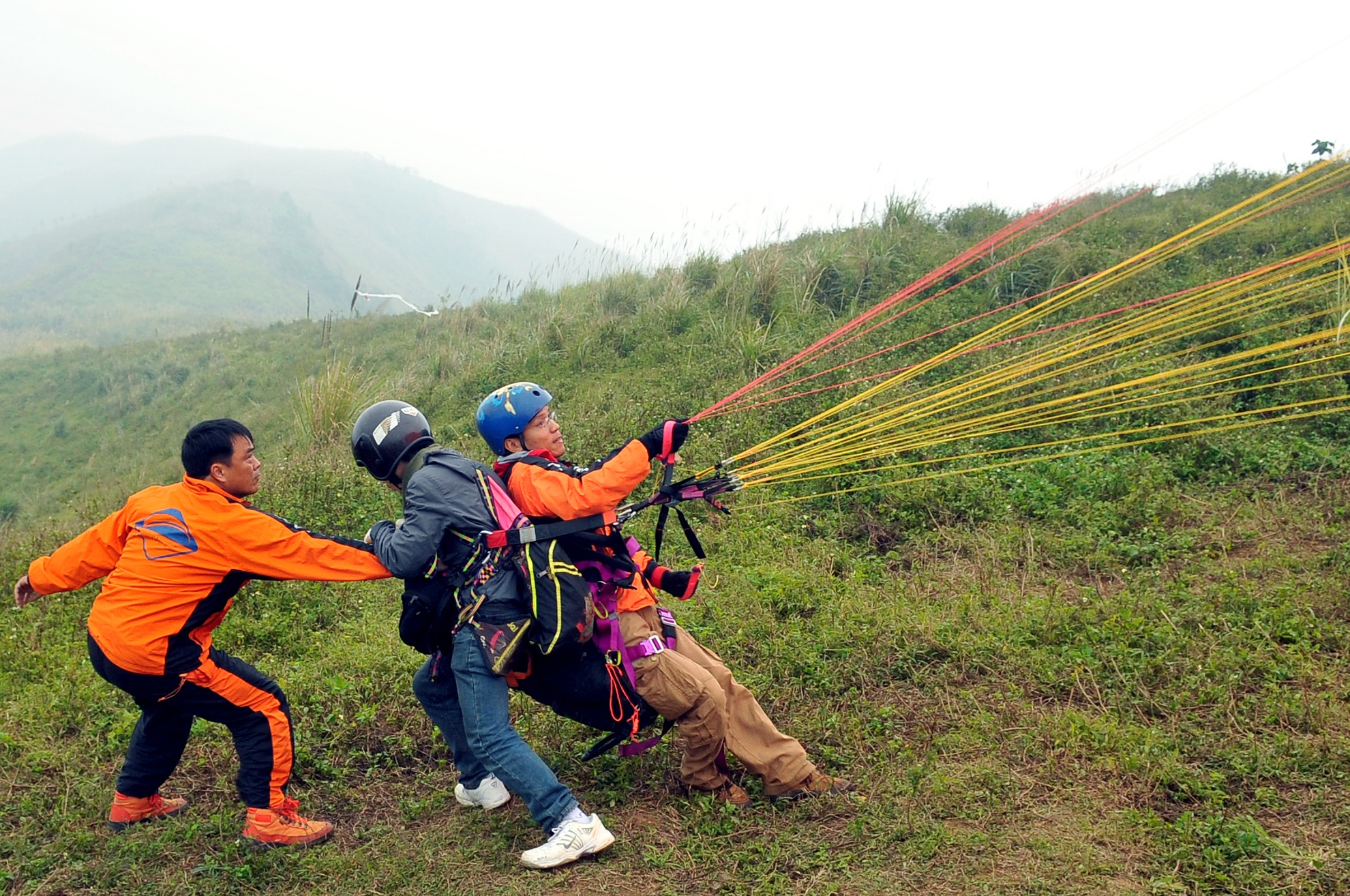 | Sau gần 10 năm chơi dù lượn anh cũng đã trở thành một bậc thầy trong môn thể thao này. Giới chơi thể thao mạo hiểm hầu như ai cũng biết đến Đặng Thành Chung. |