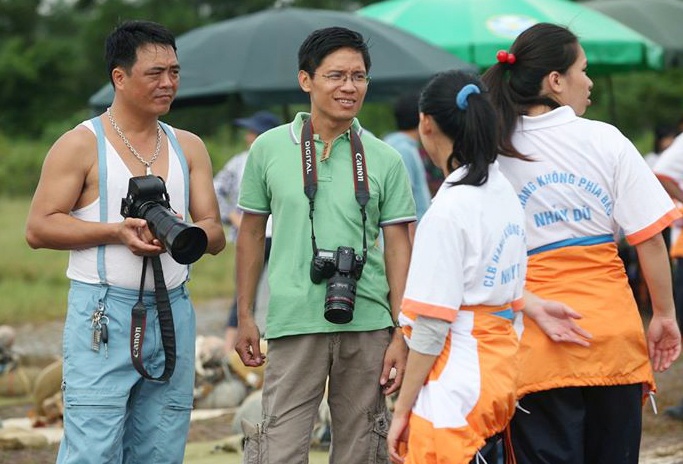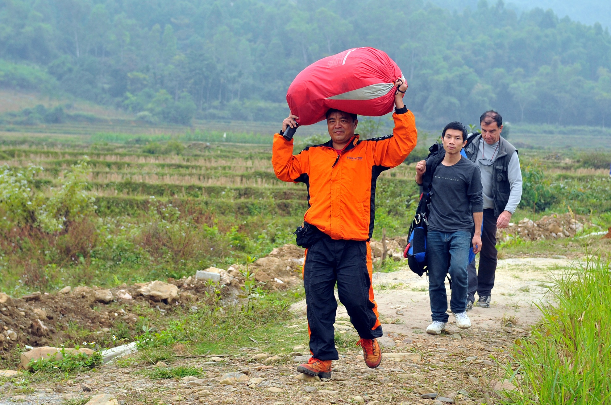 | Còn anh Nguyễn Việt Hà (áo xanh) người bạn dù lượn trong nhóm VietWings tâm sự với Zing.vn: "Anh Chung đã cống hiến hết mình cho bầu trời, sống với đam mê và truyền lại đam mê đó cho các thế hệ trẻ. Anh ấy đã sống một cuộc đời đầy niềm vui mà nhiều người mơ ước, là người luôn mang đến niềm vui cho bạn bè và gia đình". |