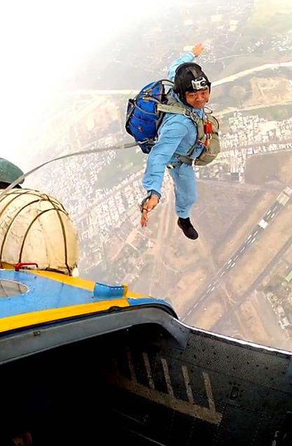 | Thiếu tá Đặng Thành Chung, huấn luyện viên, vận động viên nhảy dù của Trung tâm Quốc gia huấn luyện tìm kiếm cứu nạn đường không (Quân chủng phòng không không quân) là người có niềm đam mê vô tận với các môn thể thao bầu trời. |