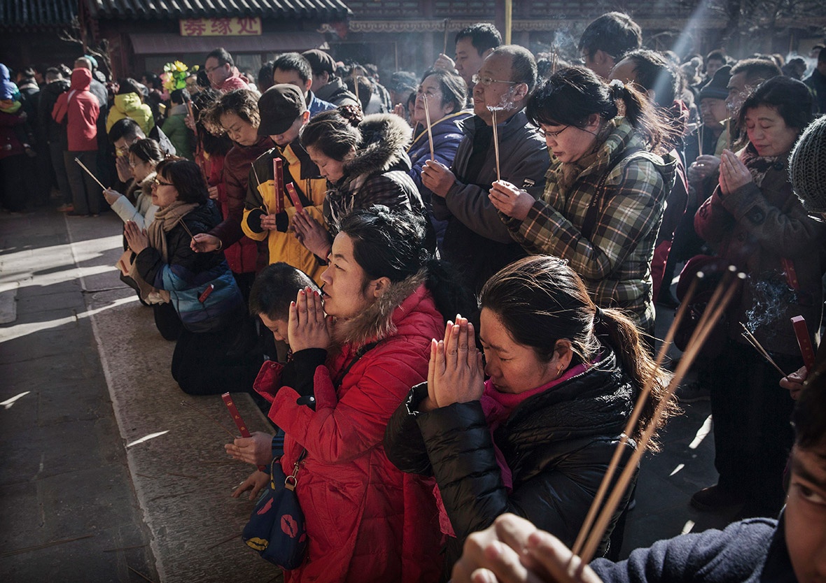 | Nhiều người che lấn để vào châm hương tại đền Yongchegong Lama ở thủ đô Bắc Kinh. Ảnh: Getty |