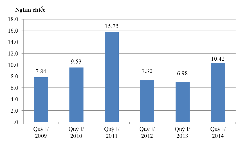 Tháng 3, lượng nhập khẩu ô tô nguyên chiếc các loại lên đến 4.400 chiếc, tăng thêm 47,4% so với tháng 2/2014. Tính chung 3 tháng đầu năm, số ô ô nhập khẩu về Việt Nam lên tới xấp xỉ 10.420 chiếc. So với cùng kỳ năm 2013, mức tăng lên tới xấp xỉ 50%.
