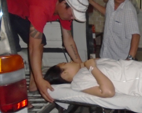 | Nạn nhân được chuyển đến bệnh viện cấp cứu. |