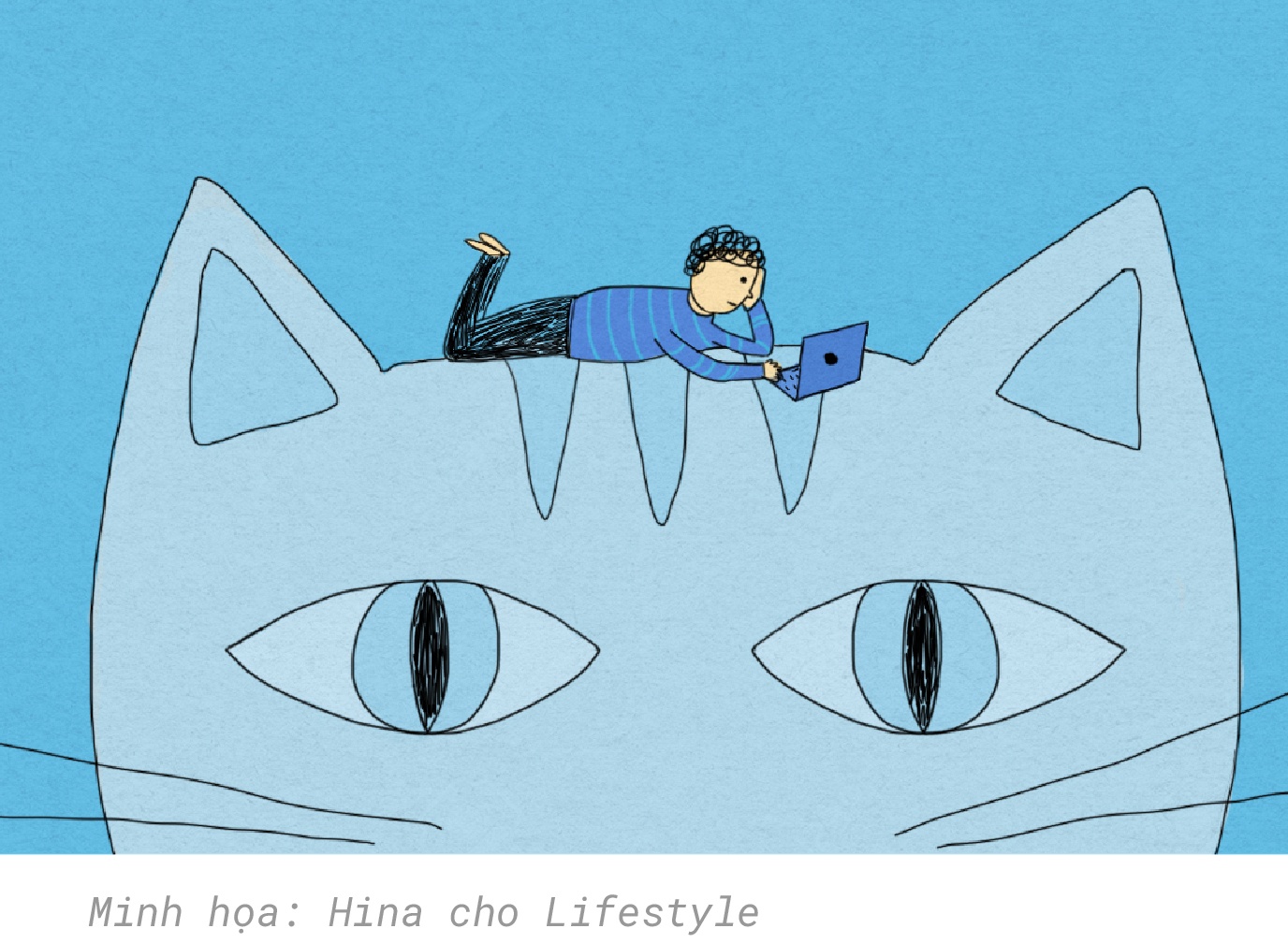 Đến khi buông điện thoại nhìn qua, tôi thấy một con mèo ngủ gọn trong lòng anh, con kia được anh gãi cằm, chốc chốc cúi xuống nựng nịu.