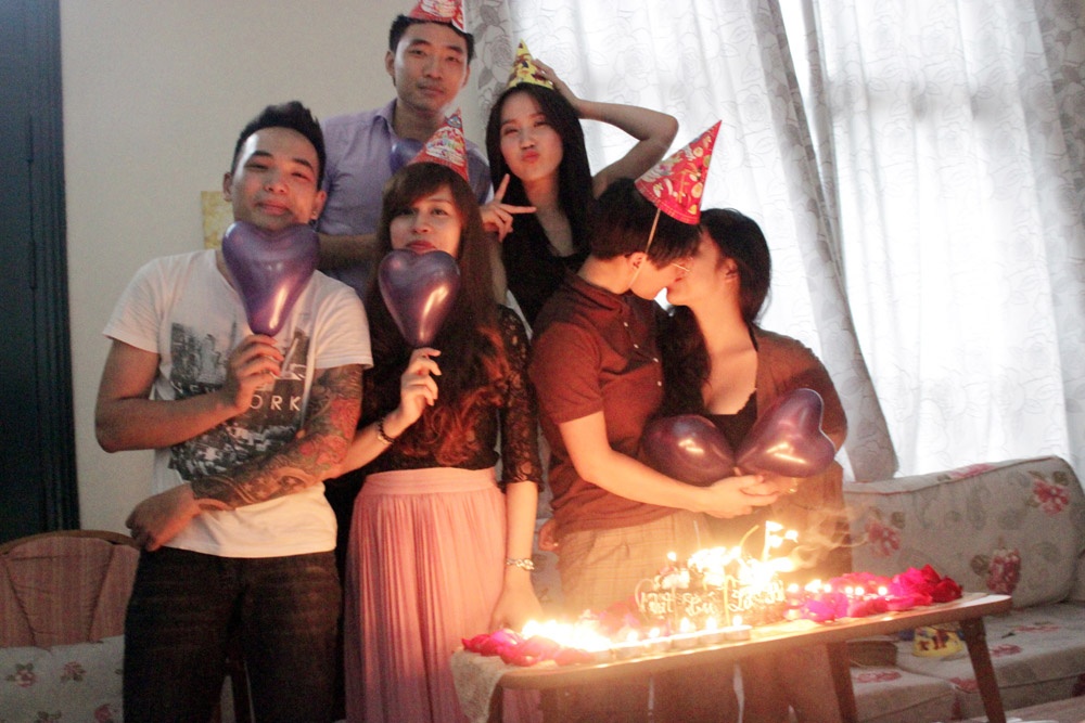 | Hình ảnh hạnh phúc của cặp đôi này bên bạn bè trong bữa tiệc sinh nhật vừa qua. |