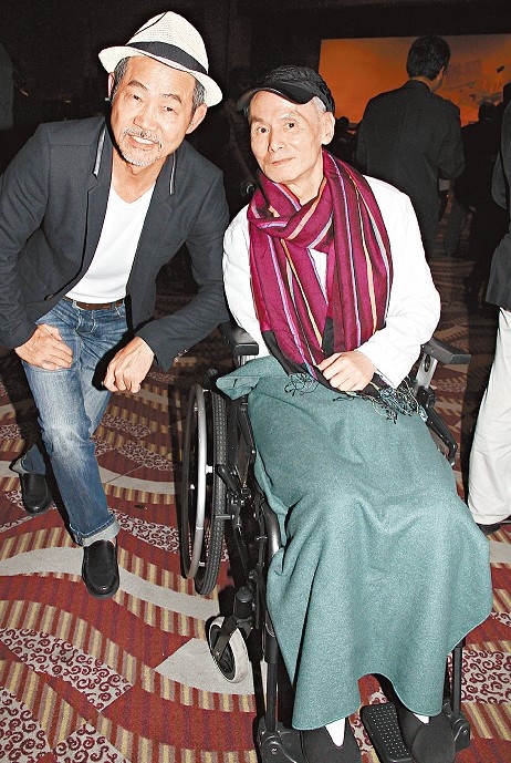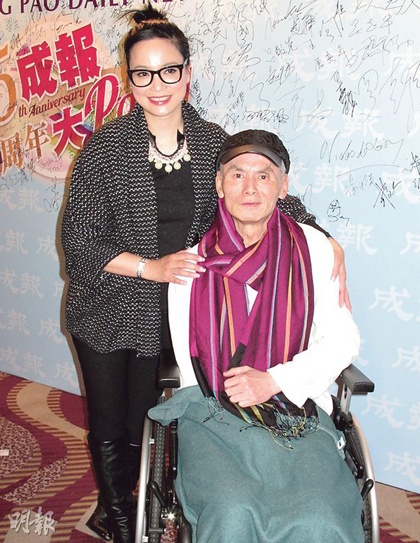 | Lưu Gia Huy ngồi trên xe lăn được Phàn Diệc Mẫn đưa tới sự kiện. |