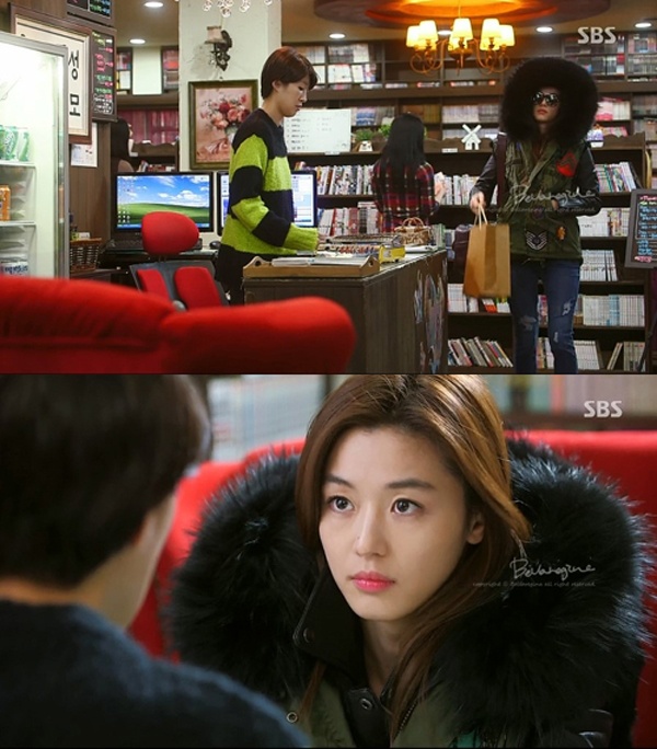 | Ở tập 3, trong lần tới trường học tìm Do Min Joon (Kim Soo Hyun đóng) để đòi lại đôi giày quý, Chun Song Yi trang bị kín mít từ đầu tới chân gồm: khăn choàng đen che mặt, kính mắt, áo choàng oversized. Với cách ngụy trang này, khó ai có thể nhận ra ngôi sao màn bạc Chun Song Yi đang có mặt ở trường đại học – nơi cô là sinh viên nhưng hiếm khi tới. |