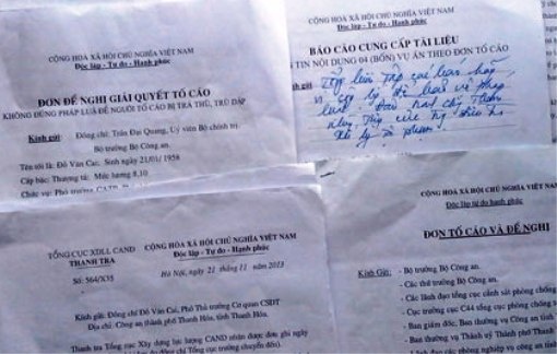 | Đơn tố cáo được ông Cai gửi đi khắp nơi. |