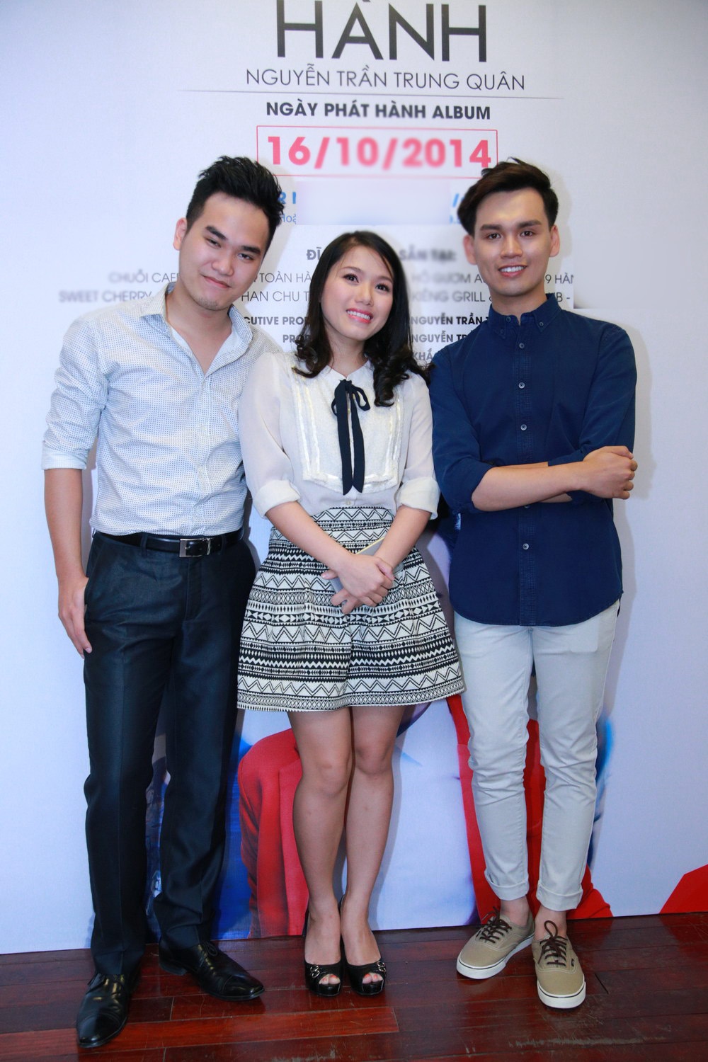 | Bộ đôi Khắc Hưng - Nguyễn Trần Trung Quân chụp hình cùng Thùy Chi trong buổi ra mắt album Khởi hành. |