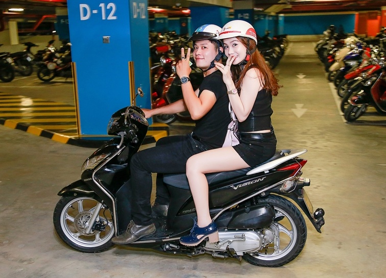 | Buổi công chiếu series Kẻ hủy diệt - Thời đại Genisys ra mắt khán giả TP HCM tối 25/6 thu hút sự quan tâm của nhiều nghệ sĩ Việt. Vợ chồng nhạc sĩ Nguyễn Văn Chung thu hút chú ý khi đến sự kiện bằng xe máy. |