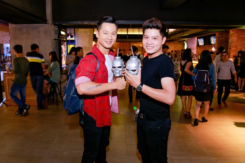 | Nguyễn Văn Chung hội ngộ ca sĩ Đức Tuấn ở sự kiện chiếu phim. |