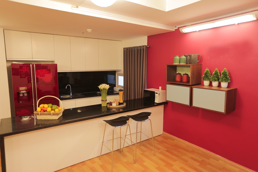 | Phòng bếp nhà chung cũng được đặc tả với đồ dùng tiện nghi cùng màu sắc bắt mắt. |