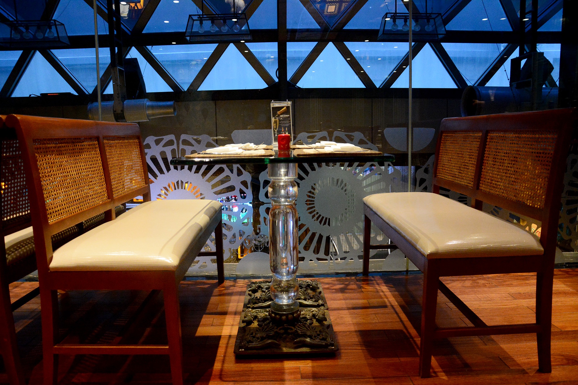 Tại tầng một có một bộ bàn ghế được thực khách quen gọi là "góc riêng tư và đẹp nhất quán". Đó là chỗ ngồi khuất sau bức tường giả gần cửa sổ, nơi bạn có thể chiêm ngưỡng toàn bộ vẻ đẹp của cả hai tầng. |