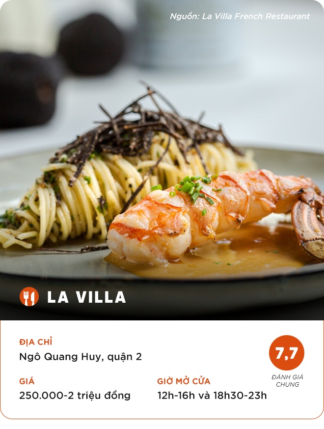 Dân Bích Chương: “Nhà hàng nằm trong khuôn viên biệt thự, đường vào nhỏ nhưng đông khách, nên đặt bàn trước khi đến. Bạn có thể thưởng thức bữa ăn tại bàn cạnh hồ bơi. Không gian sang trọng, giá cao nhưng đồ ăn không được như mong đợi. Ở đây có hẳn thực đơn riêng các loại rượu. Điều mình hài lòng nhất là nhân viên phục vụ nhiệt tình với thực khách”.